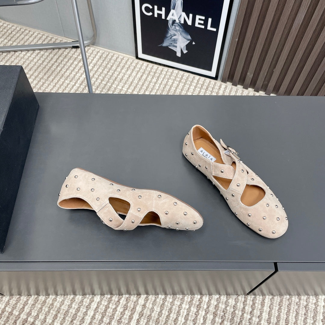 Alaia 2025 Criss Cross With Stud Ballet Flats Nude Suede 293206