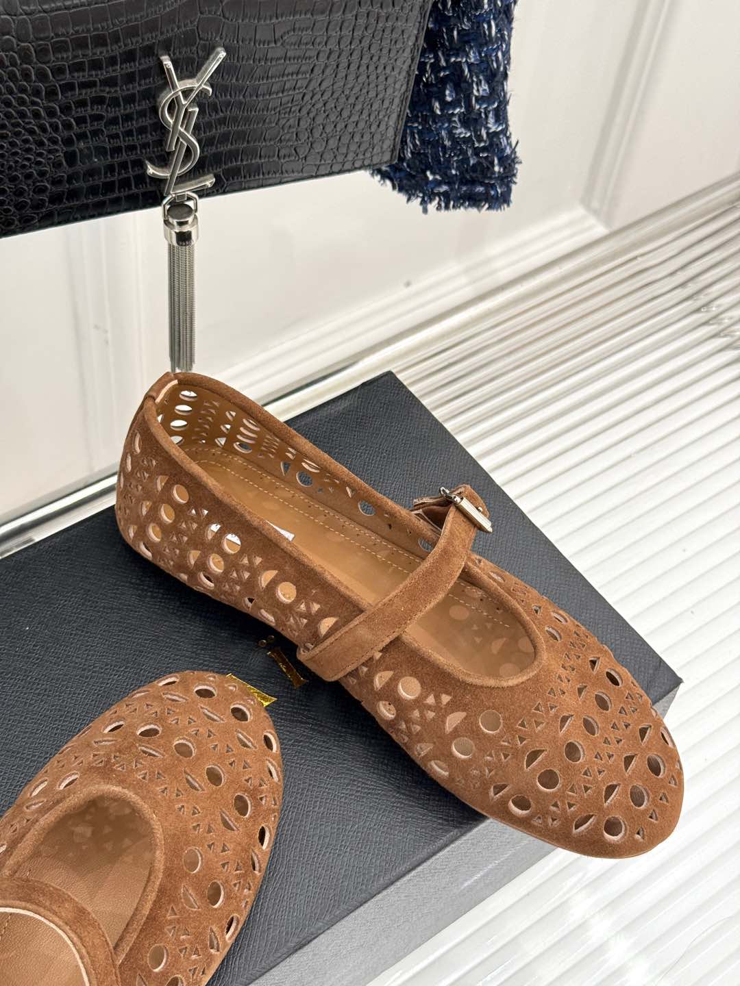 Alaia Women's Ballet Flat Brown Beige Suede 293222