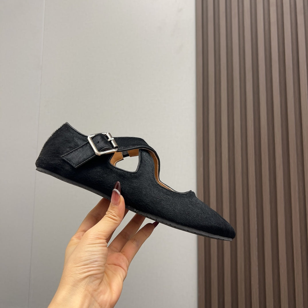 Alaila Criss Cross Ballet Flats In Black Lambskin 996063