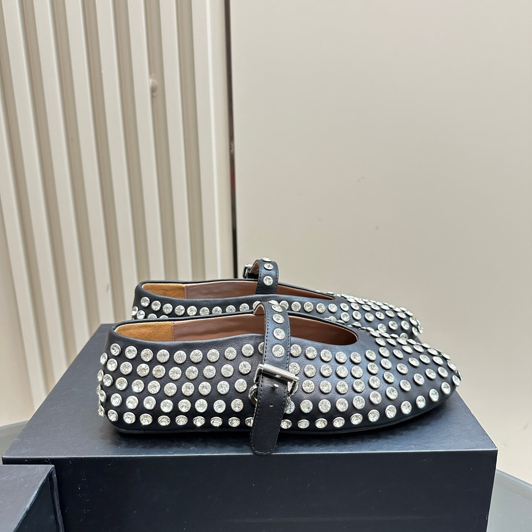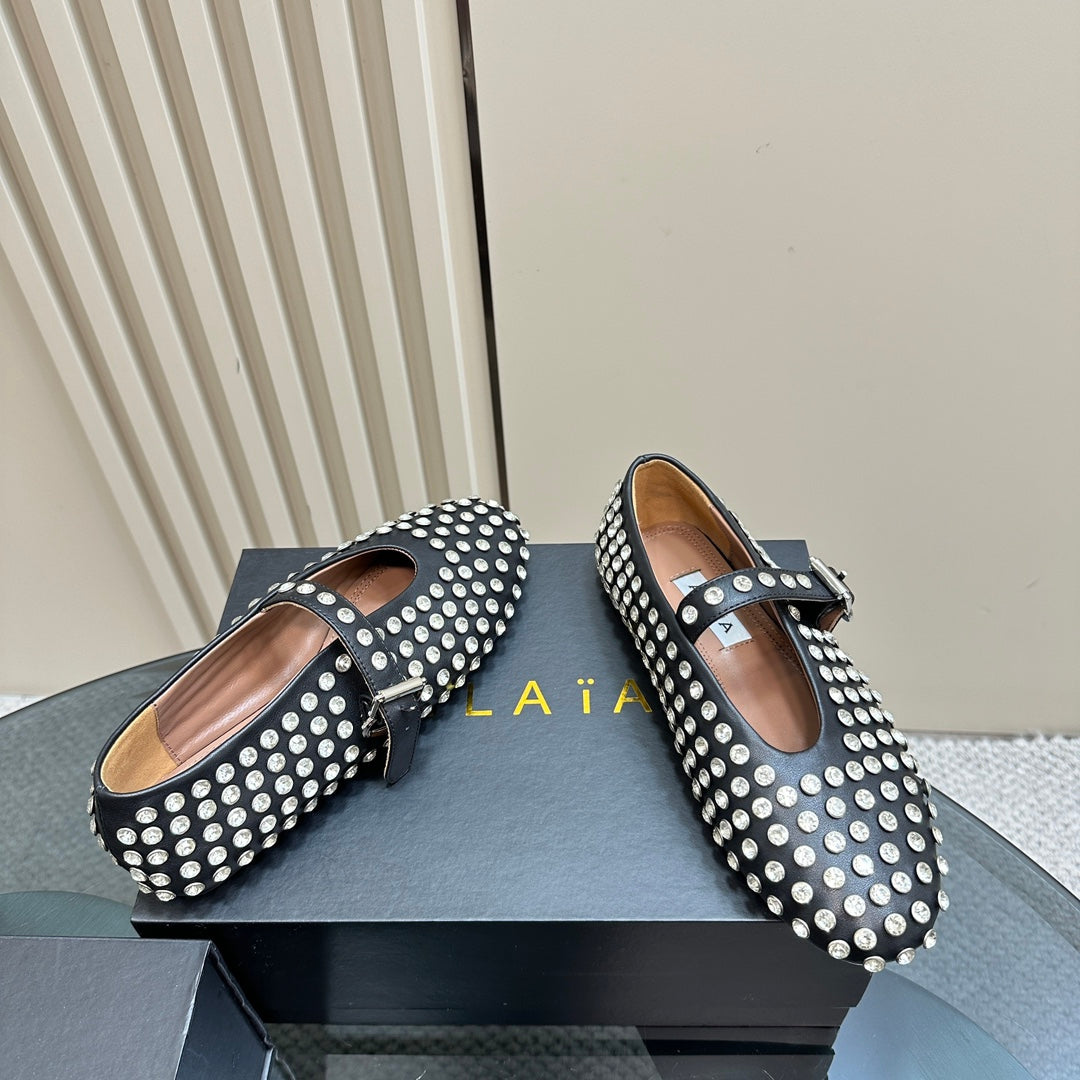ALAIA SPHERE BALLET FLATS IN BLACK LAMBSKIN