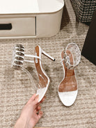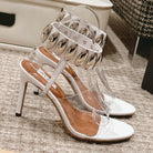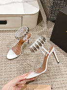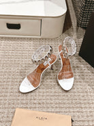 ALAIA HIGH SANDAL IN WHITE CALFSKN AND FILM WITH CRYSTAL