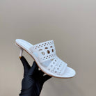 Alaia Vienne Cutout Kitten-Heel Slide Sandals White Sheepskin 299663