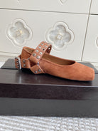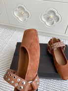Alaia 25 Biker Ballet Flats Brown Suede 291057