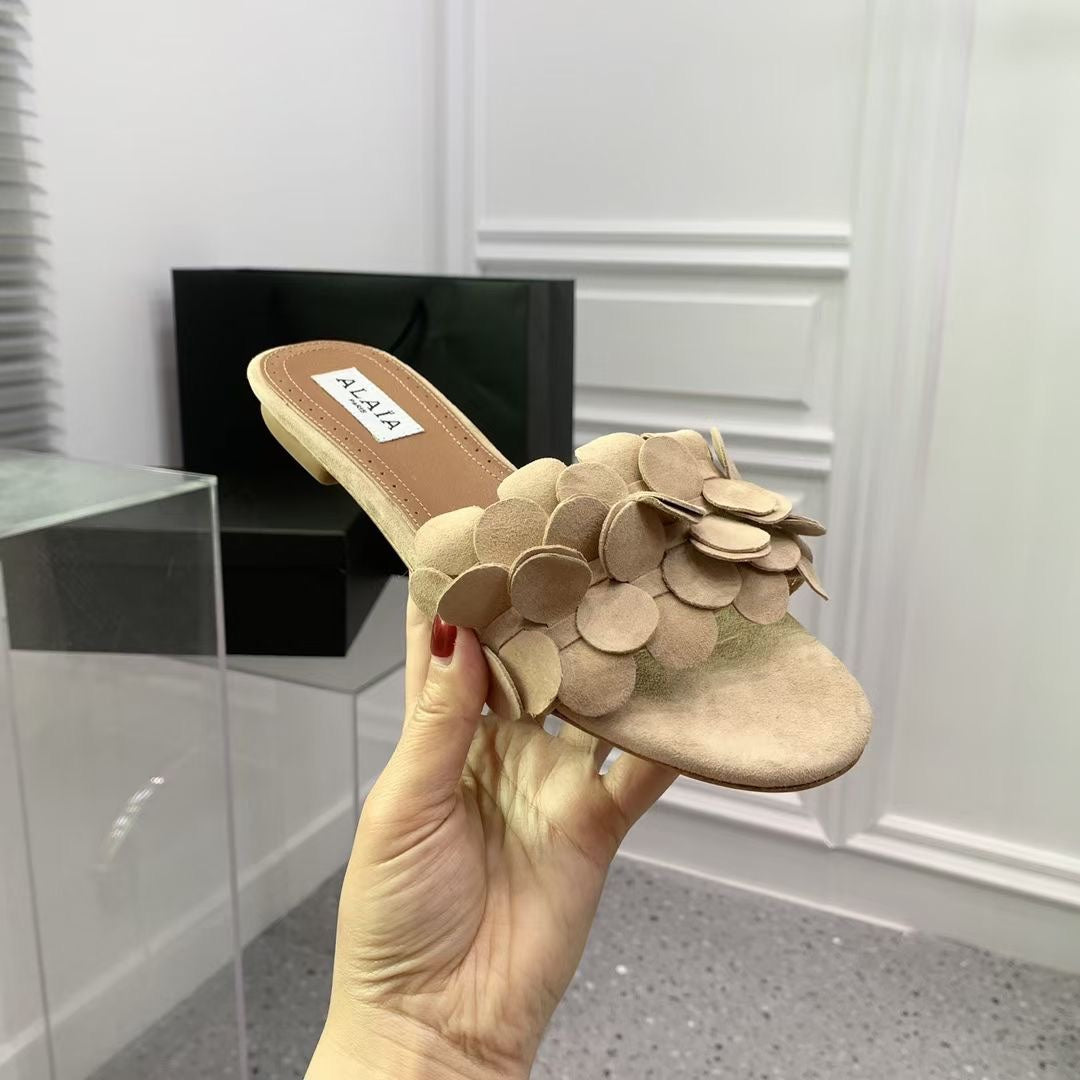 Alaia 25 Flower Slippers Pale Yellow Sheepskin 293158