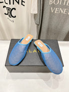 ALAIA FLAT MULES IN CERULEAN BLUE MESH FISHNET