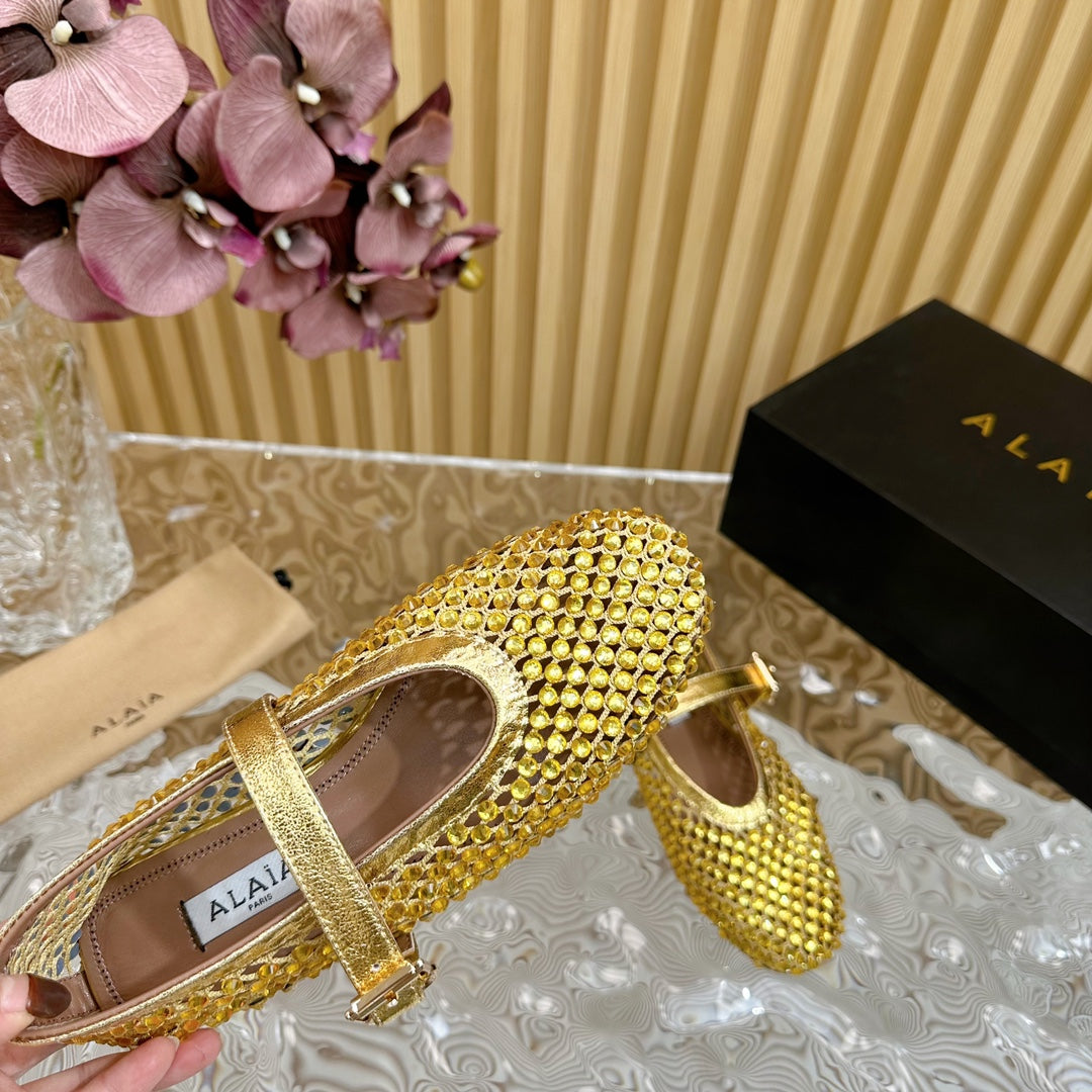 alaia ballet flat fishnet gold metalic lambskin