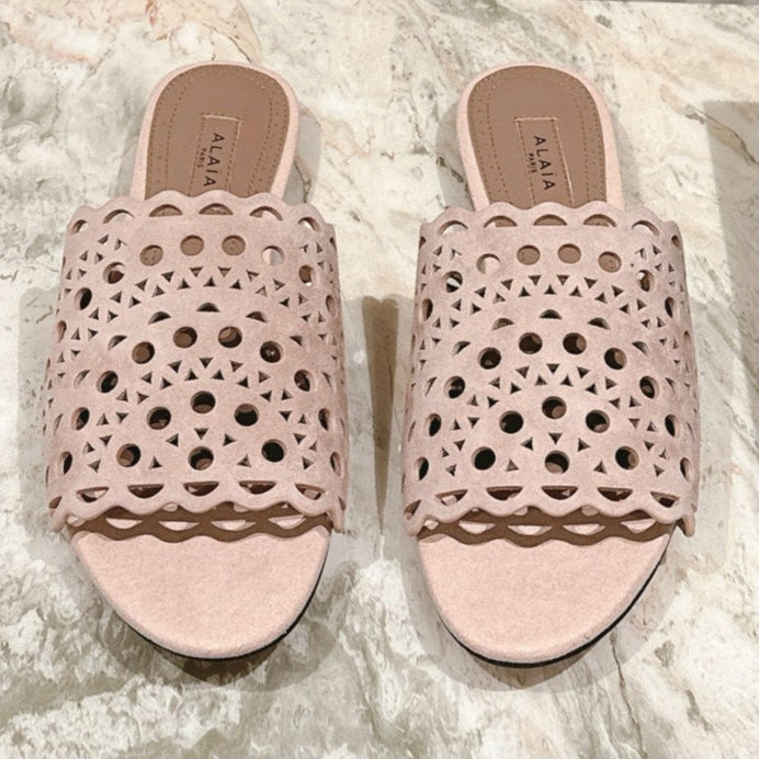 Alaia 2025 Hollow Slippers Pink Leather 293652
