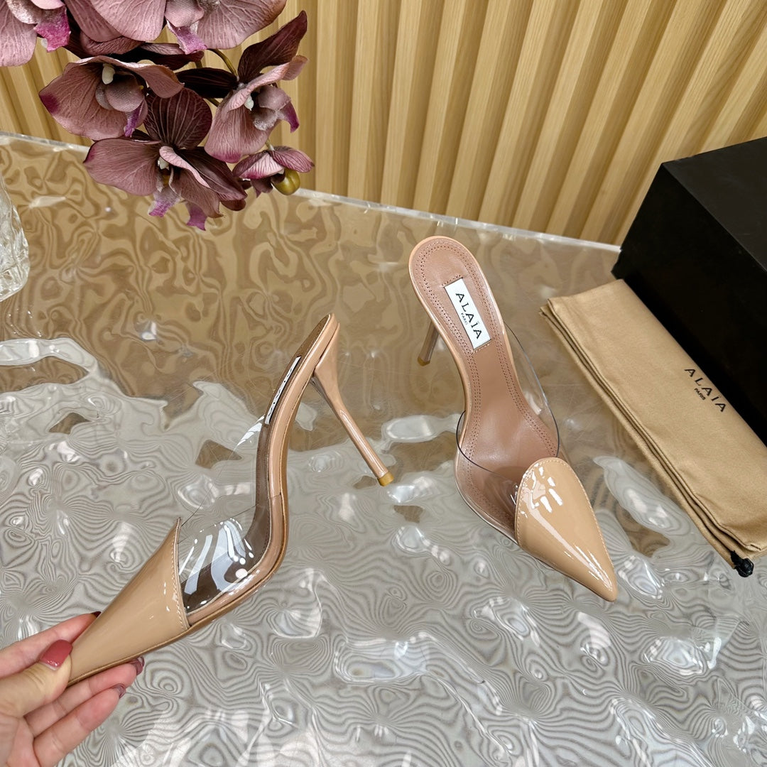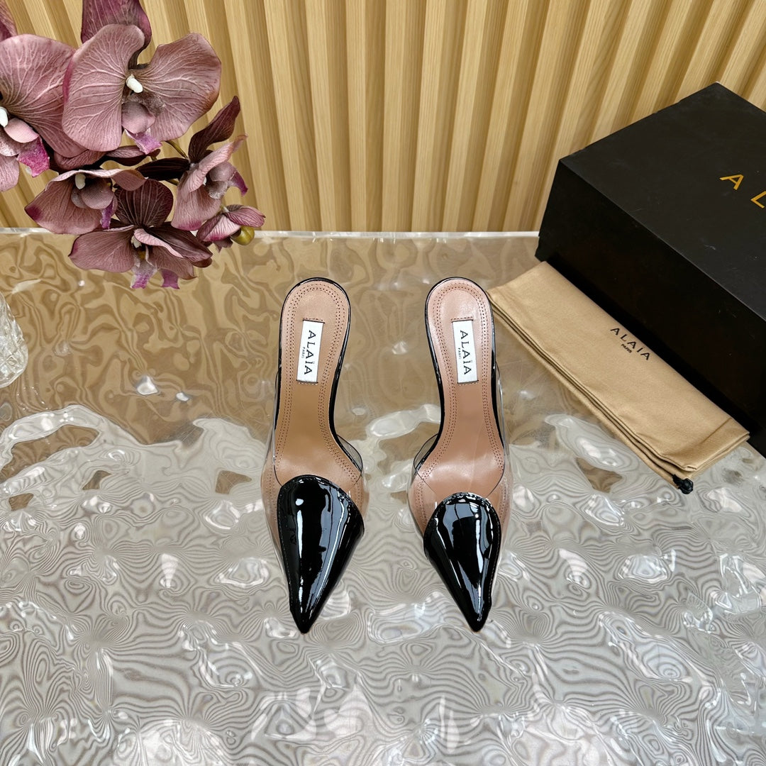 Alaia Heart 50mm Heels Slingbacks Black Sheepskin 810209