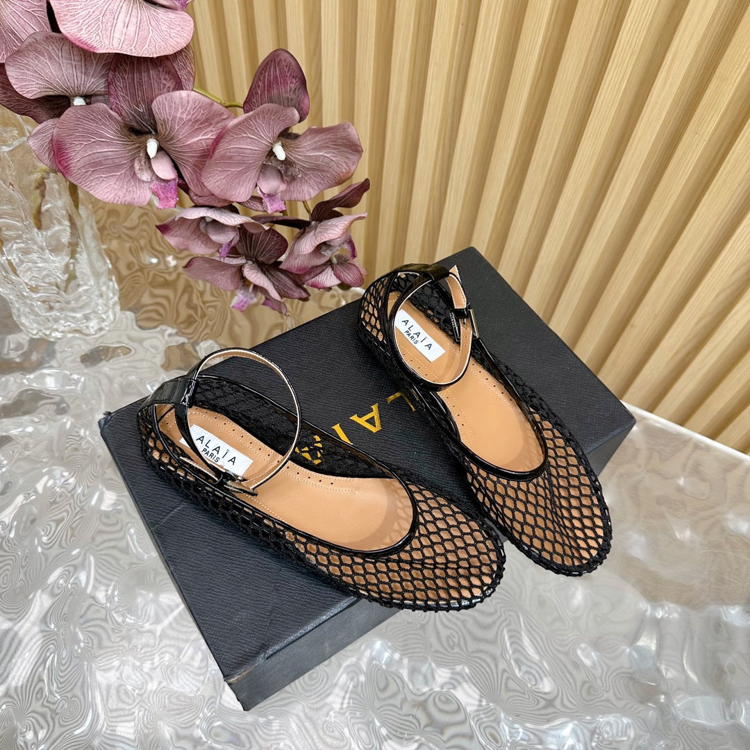 Alaia Ballet Flats In Black Stretch Woven Sedge 102276