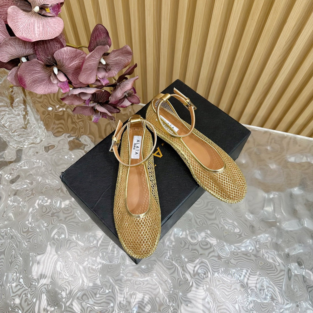 Alaia Ballet Flats In Gold Woven Cowhide 102288