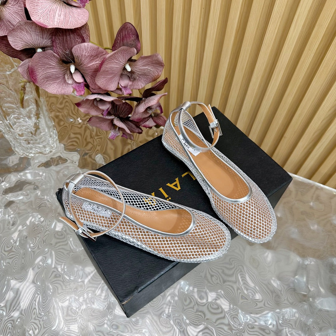 Alaia Ballet Flats In Dark Grey Stretch Woven Sedge 102278