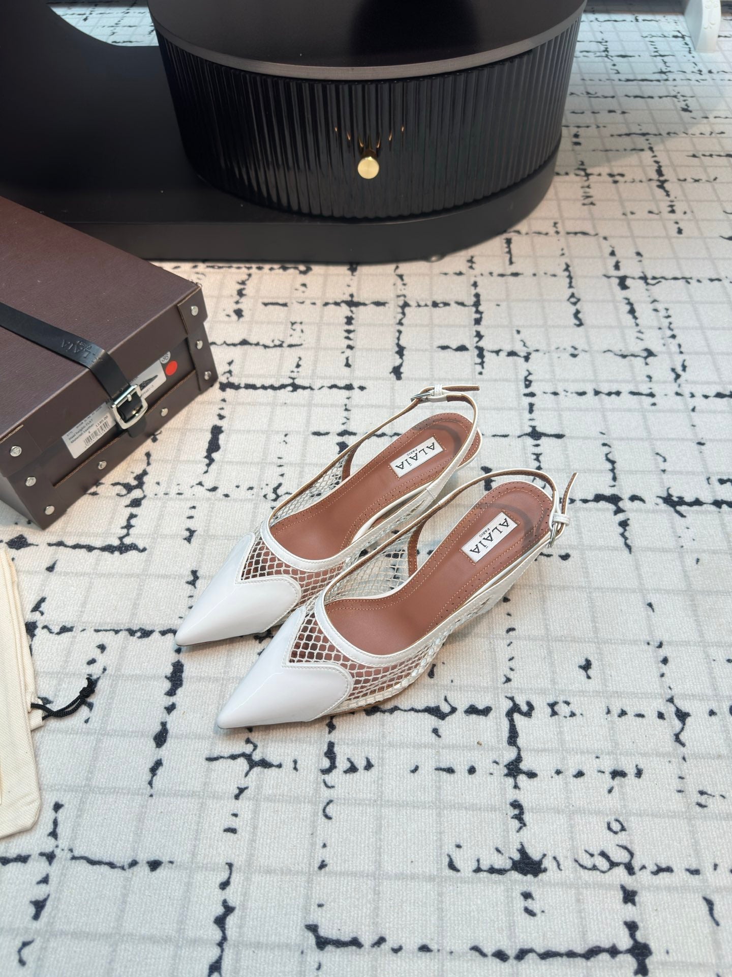Alaia Heart 50mm Heels Slingbacks White Sheepskin 800931