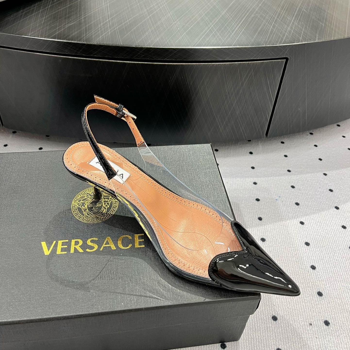 Alaila Le Cœur Slingbacks 60mm In Black Glossy Lambskin 954833
