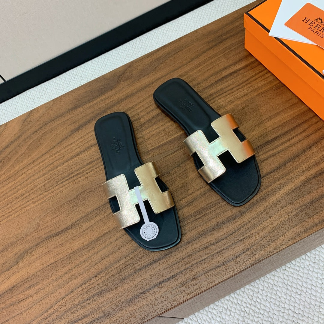 0ran Sandal Black Gold Metalic Lambskin