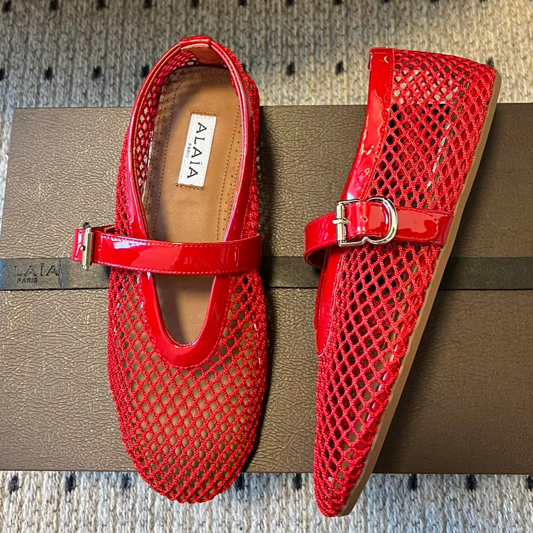 alaia ballet flat fishnet black lambskin