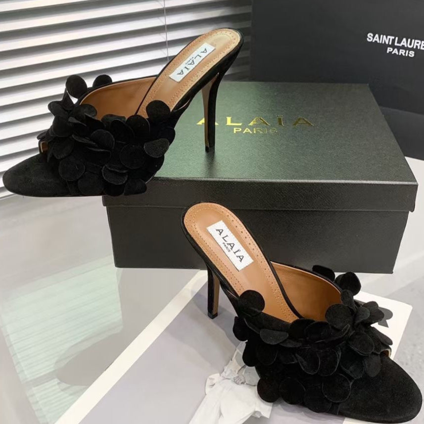 Alaia Confetti Leather Mules Black Sheepskin Cowhide 293166