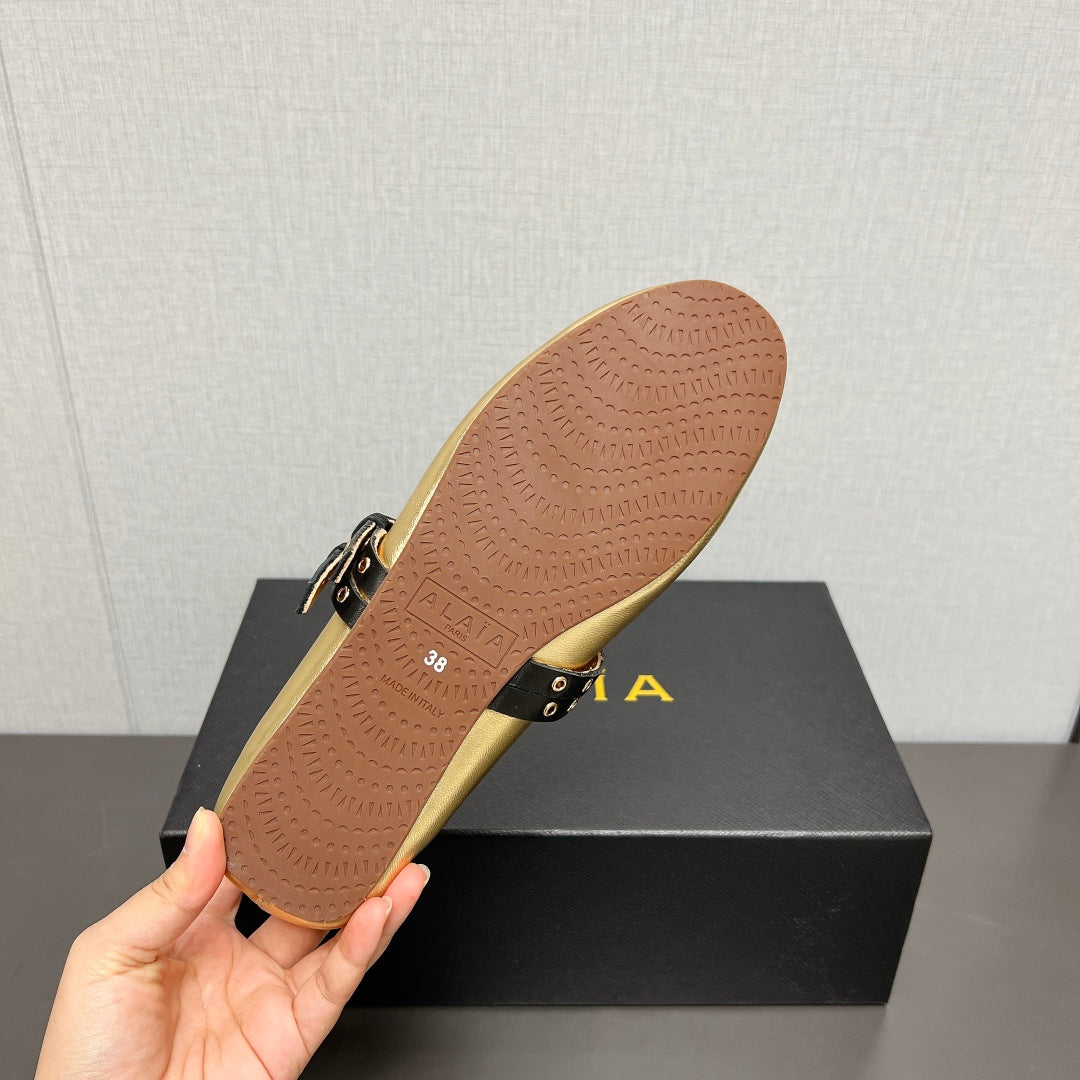 ALAIA MARY JANE IN GOLD LAMBSKIN WITH GOLD HARDWARE