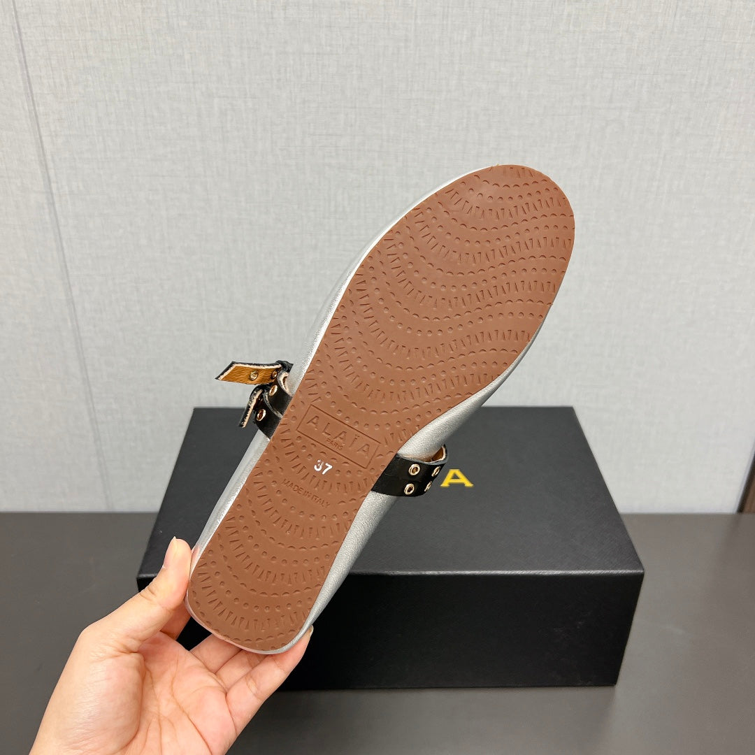 Alaia Mary Jane Ballet Flat Silver Lambskin 293236