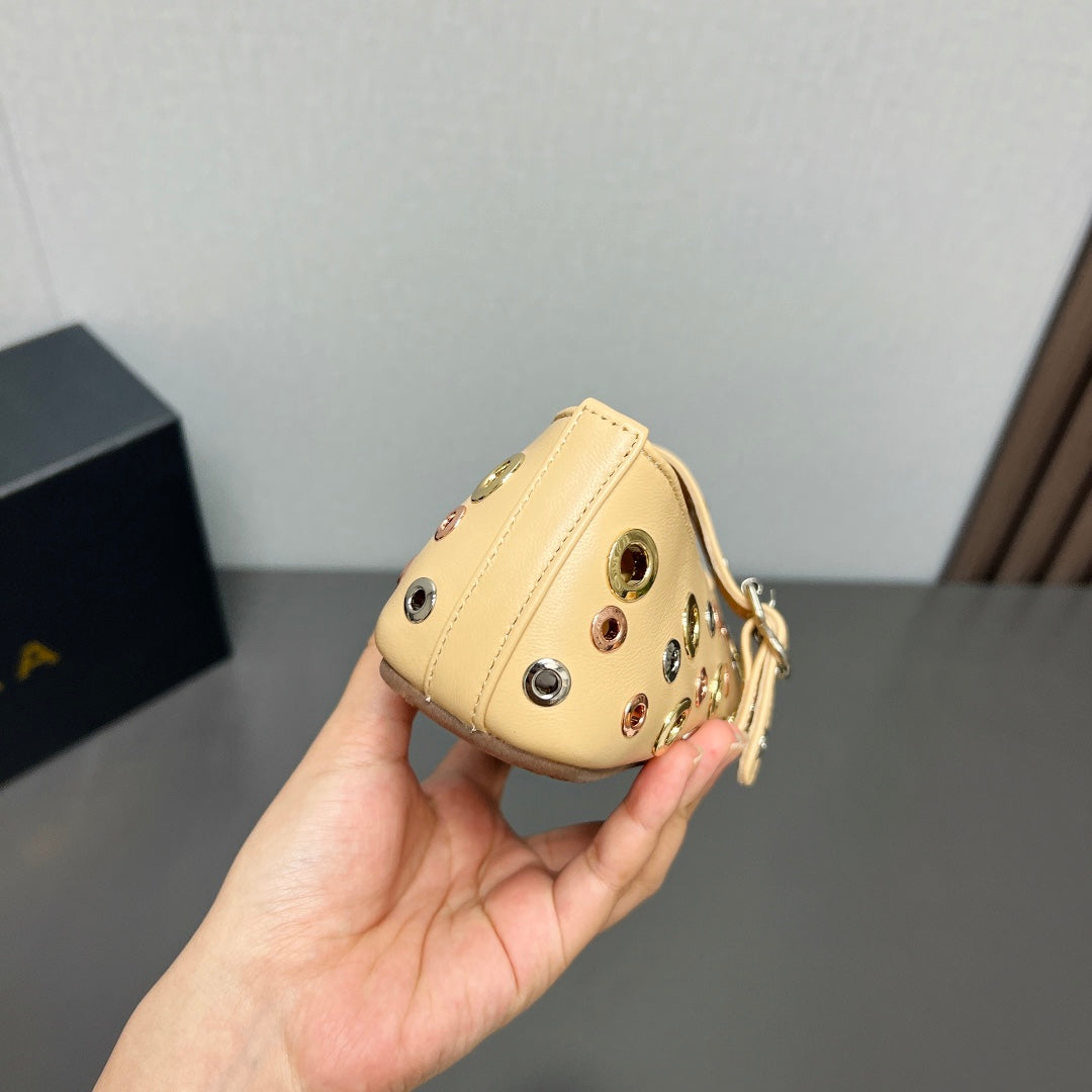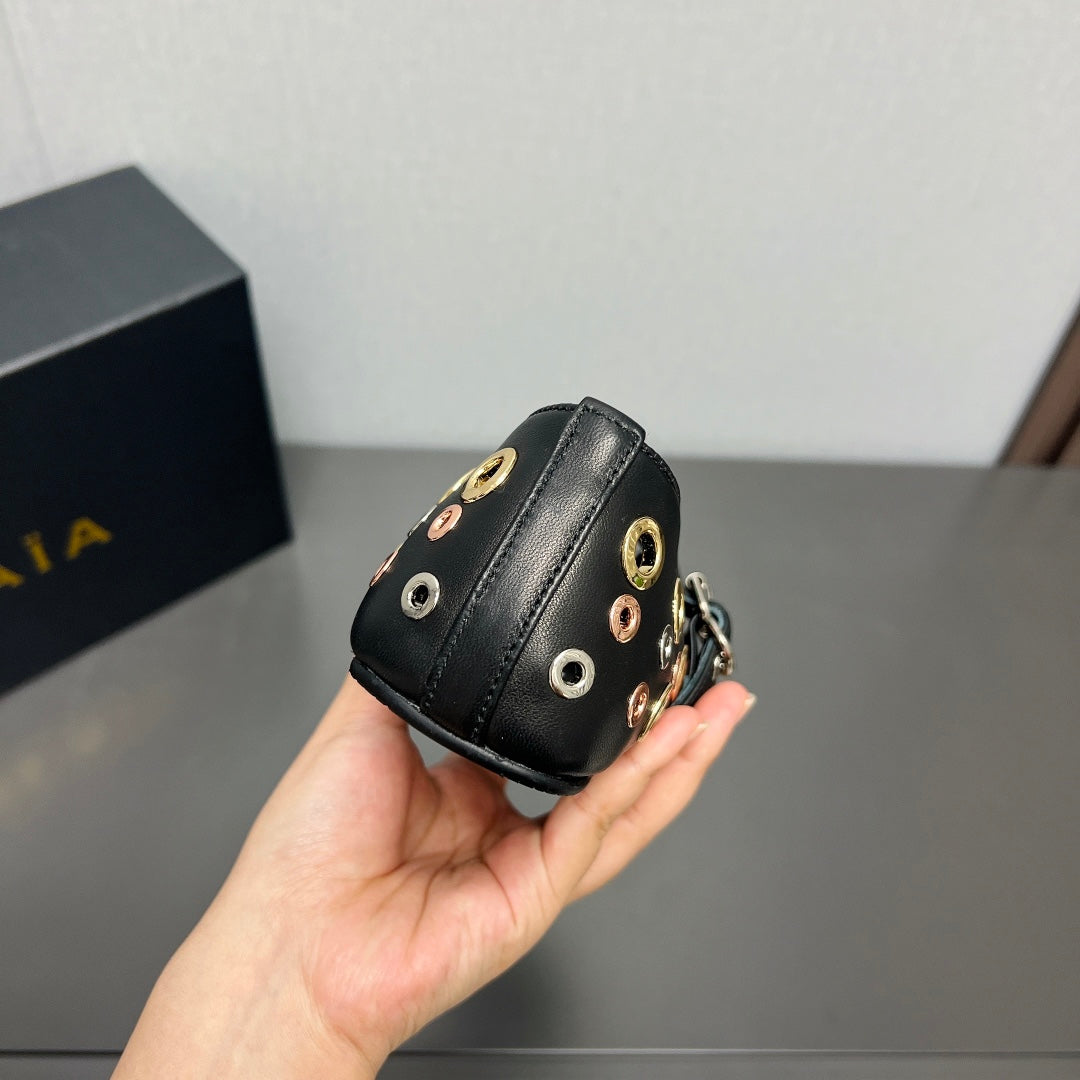 ALAIA Medium Hobo Flat Bag Metal Rivet Black Calfskin 243053