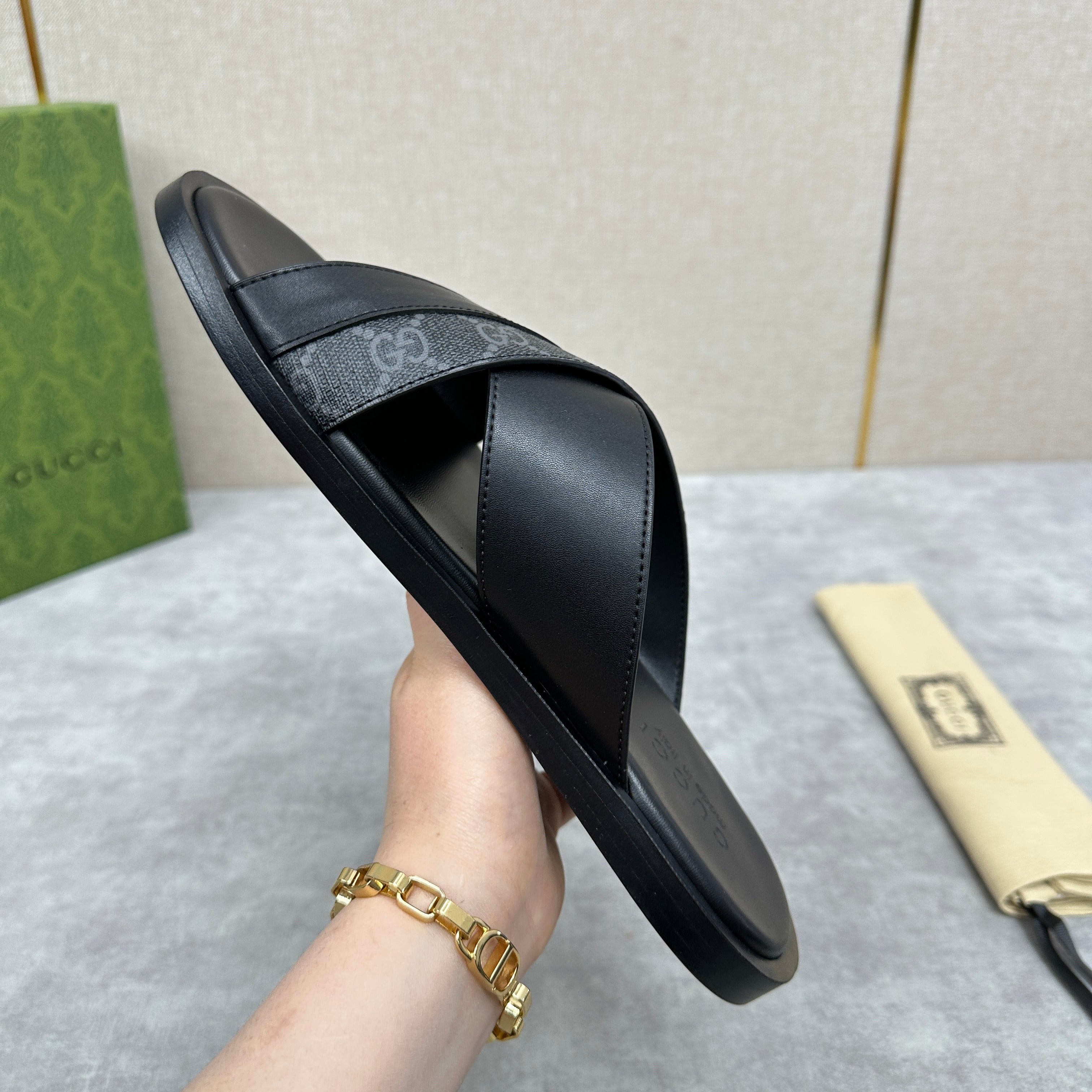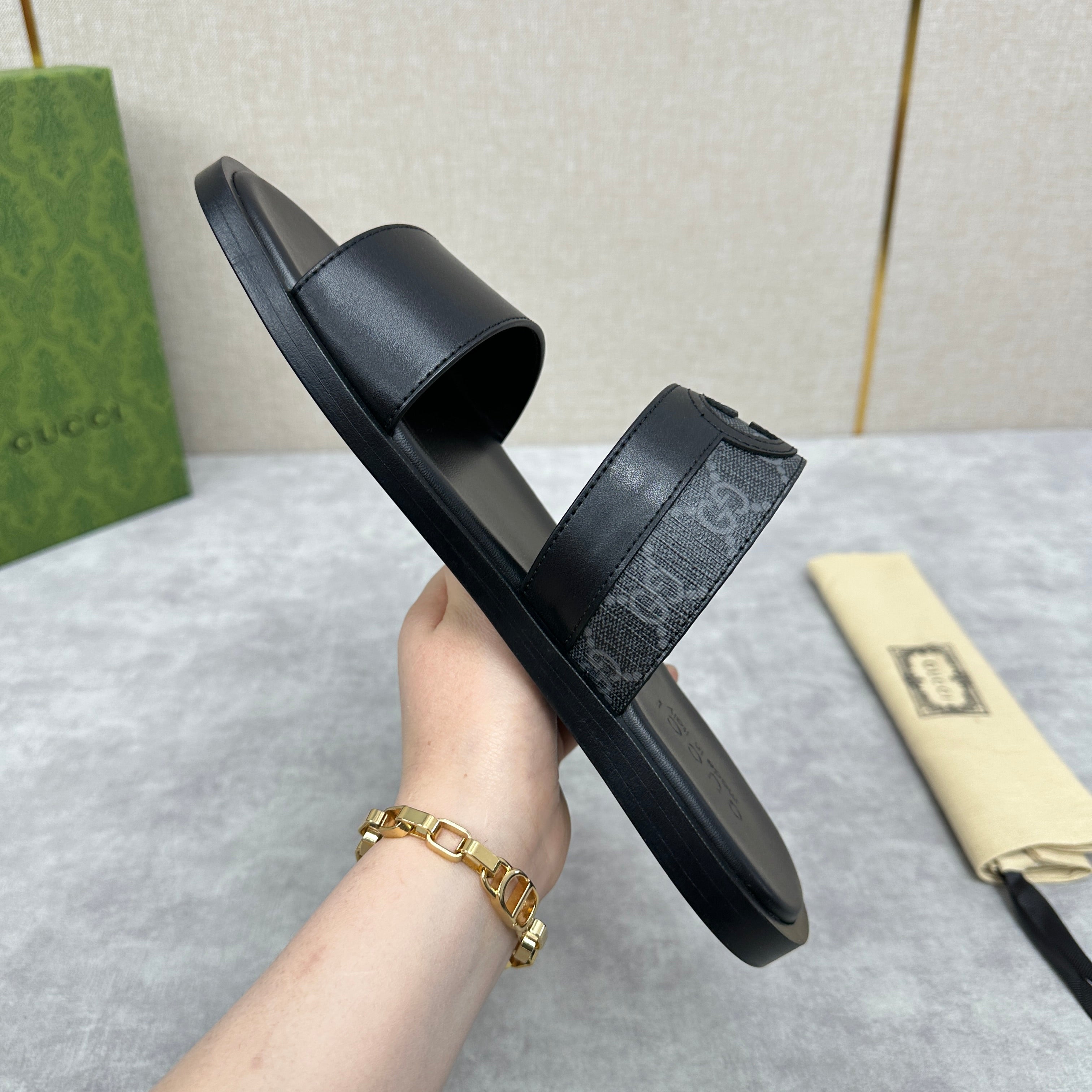 GG Men's Slide Black Cowhide 547704