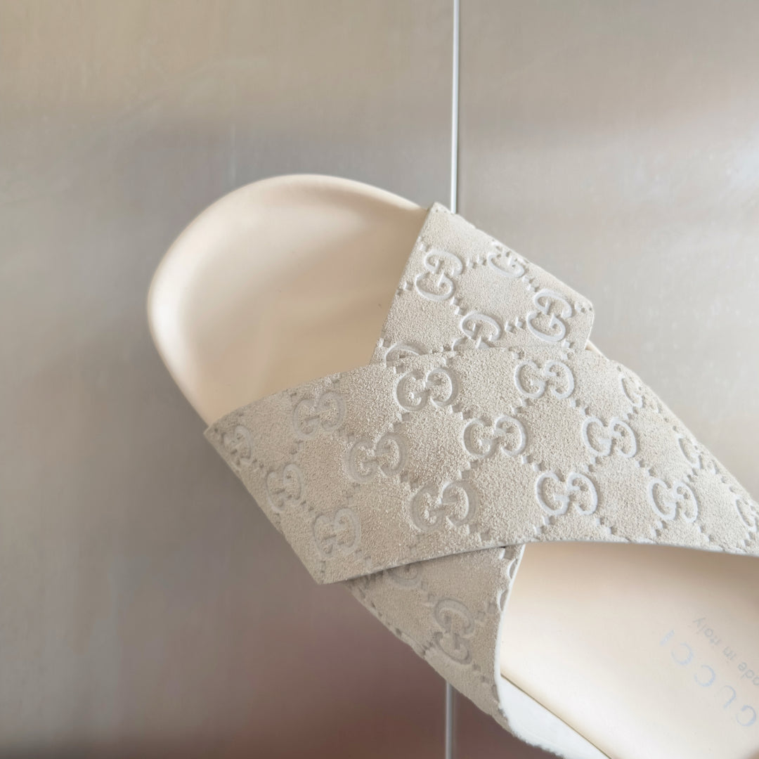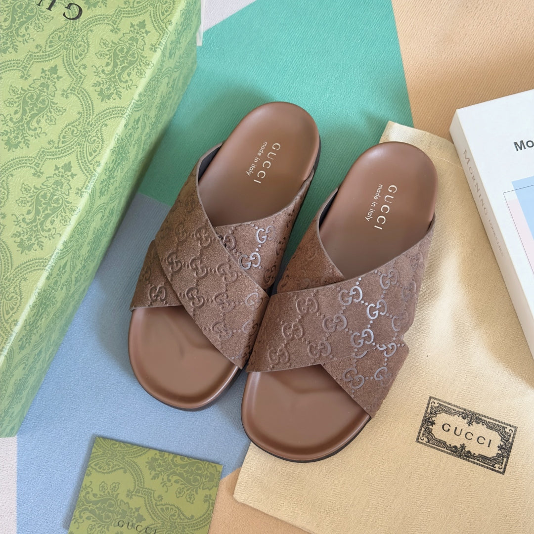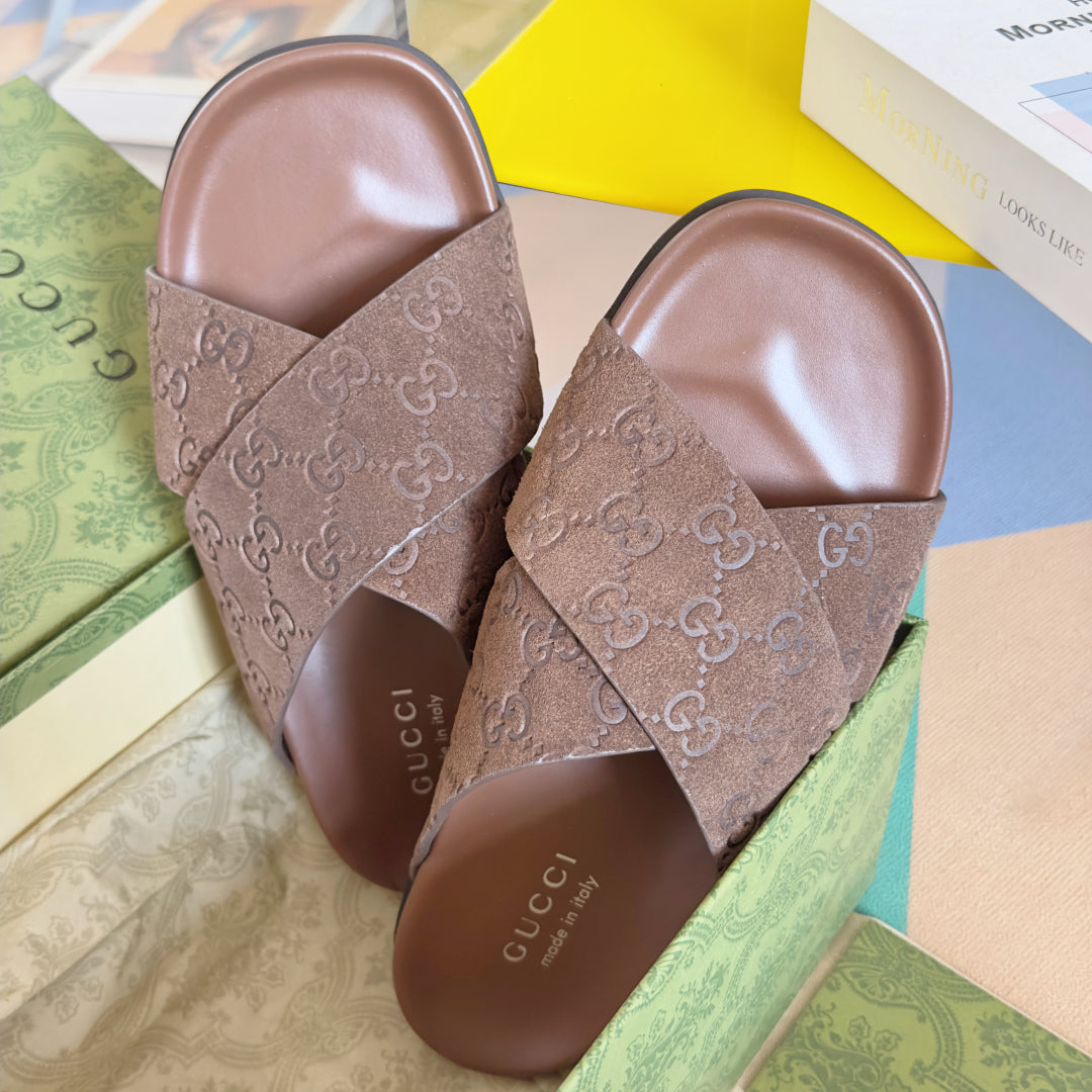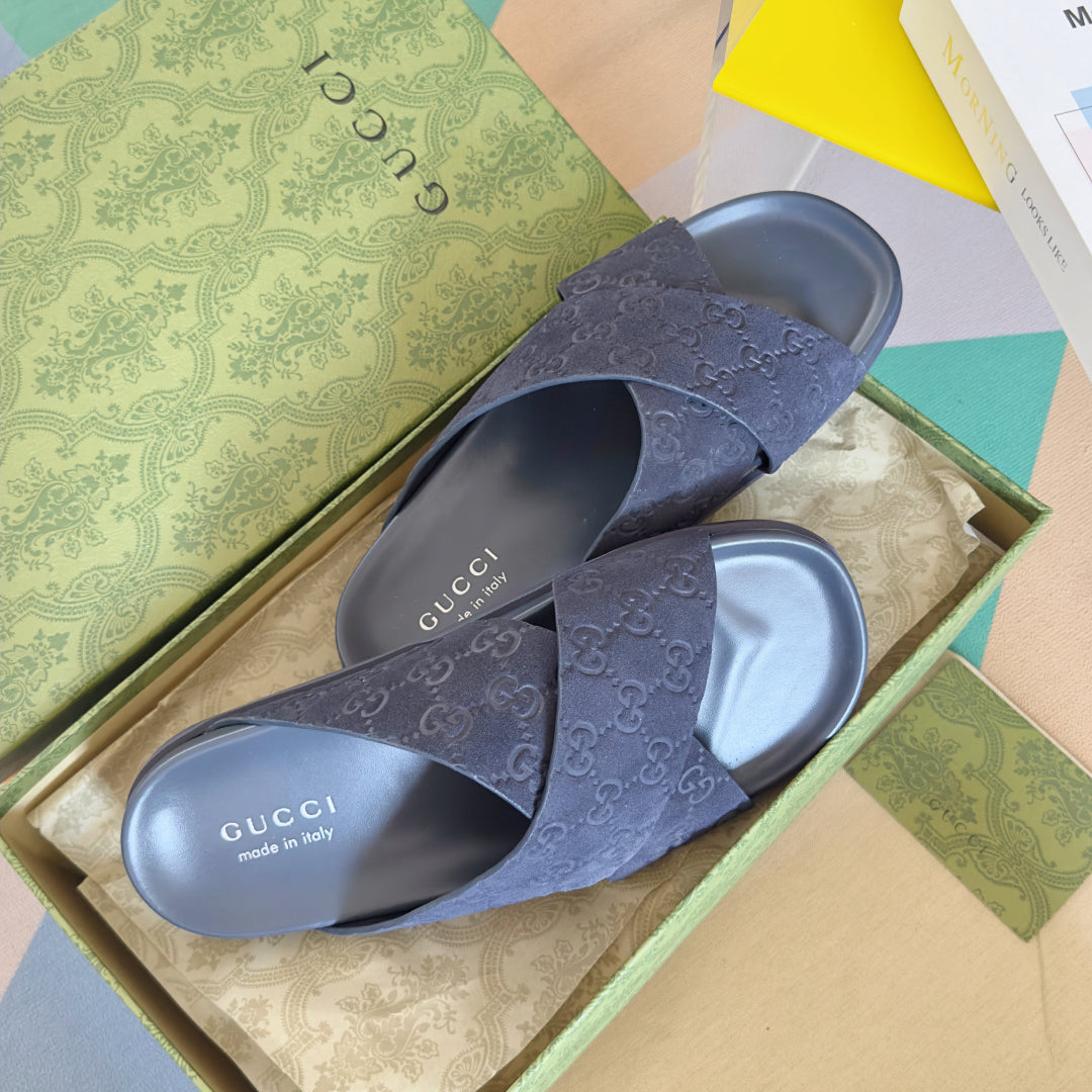 GG Men's Slide Navy Blue Embossed Suede 595718