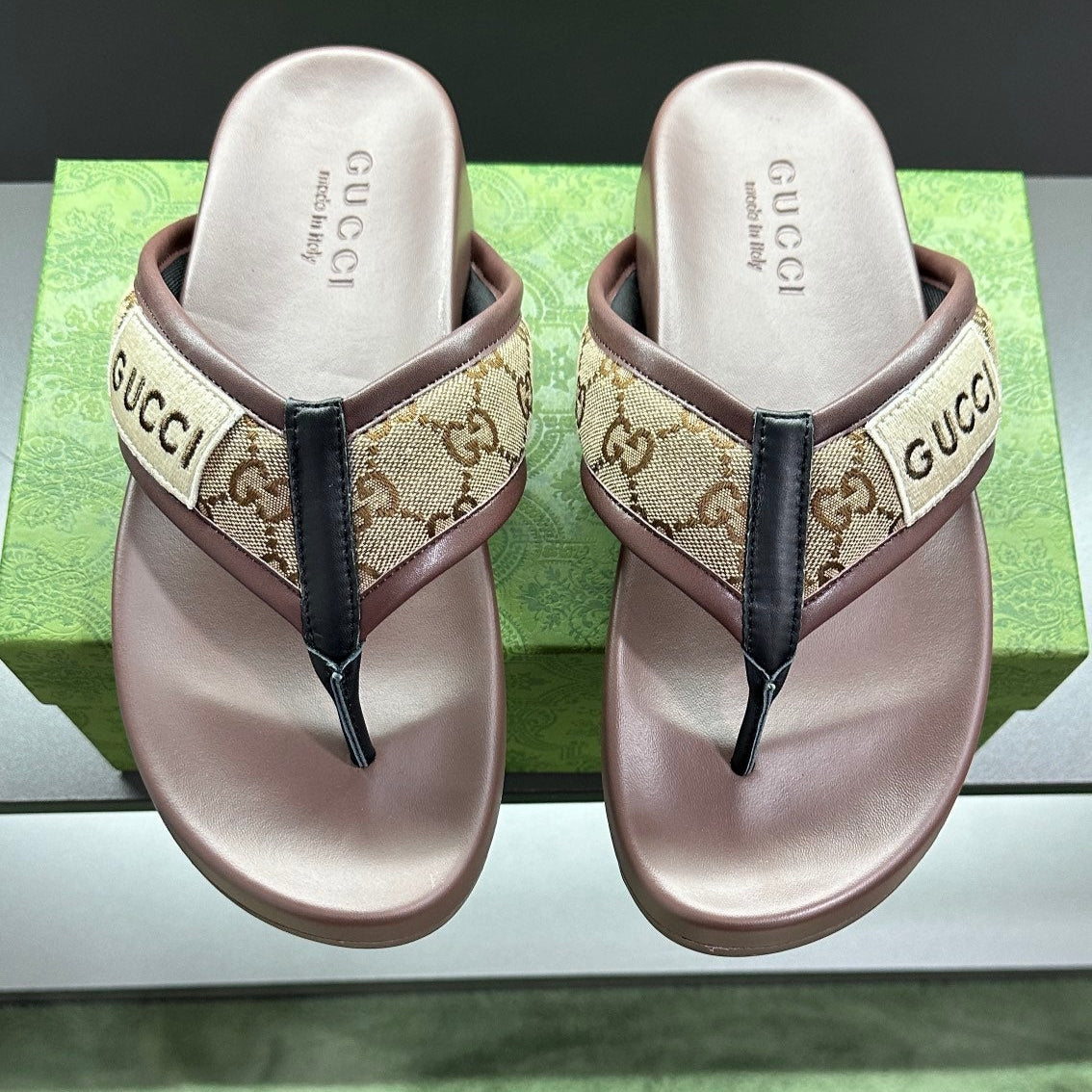 GG Men's Thong Sandals Brown Polyester Leather 547251