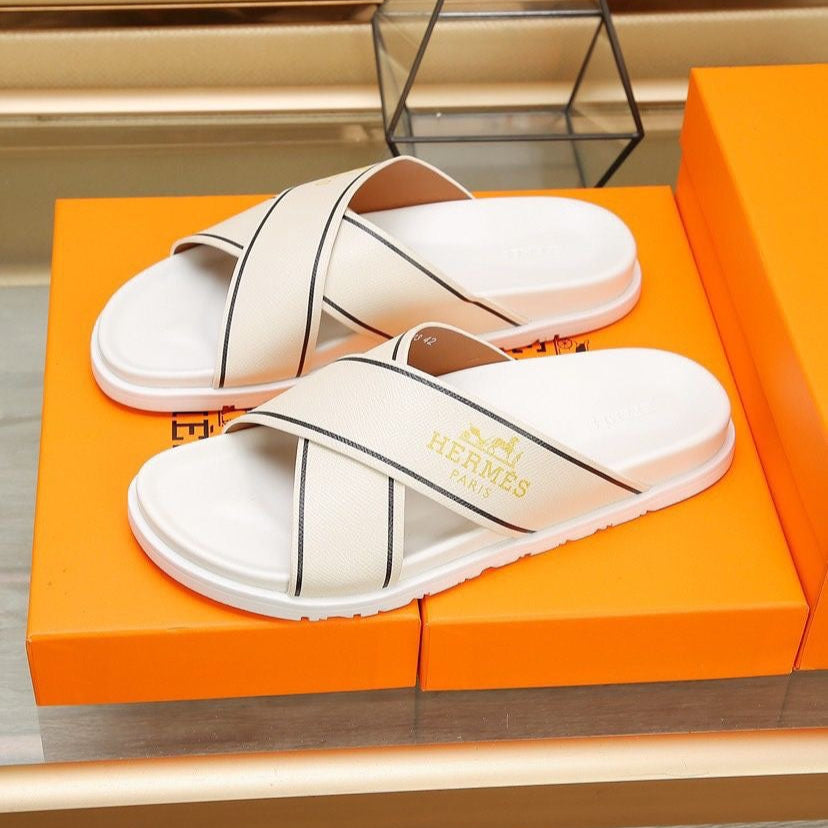 HM Men's Chypre Slide White Epsom Calfskin 538612