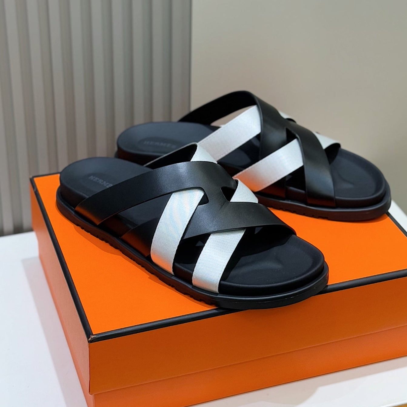 HM Men's Kazimir Sandals Black Orange Calfskin 735750