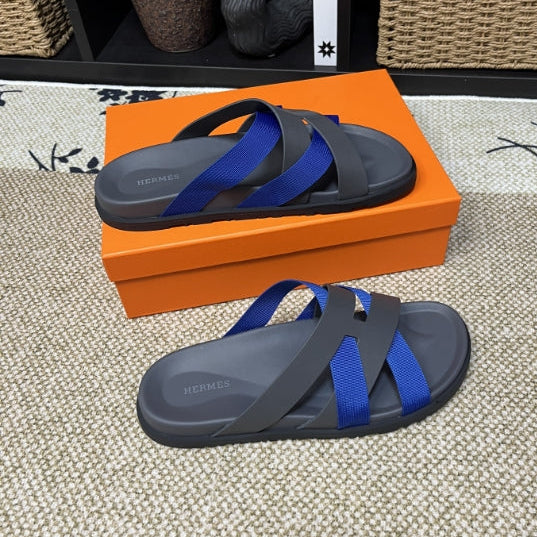 HM Men's Kazimir Slide Blue White Calfskin 562777