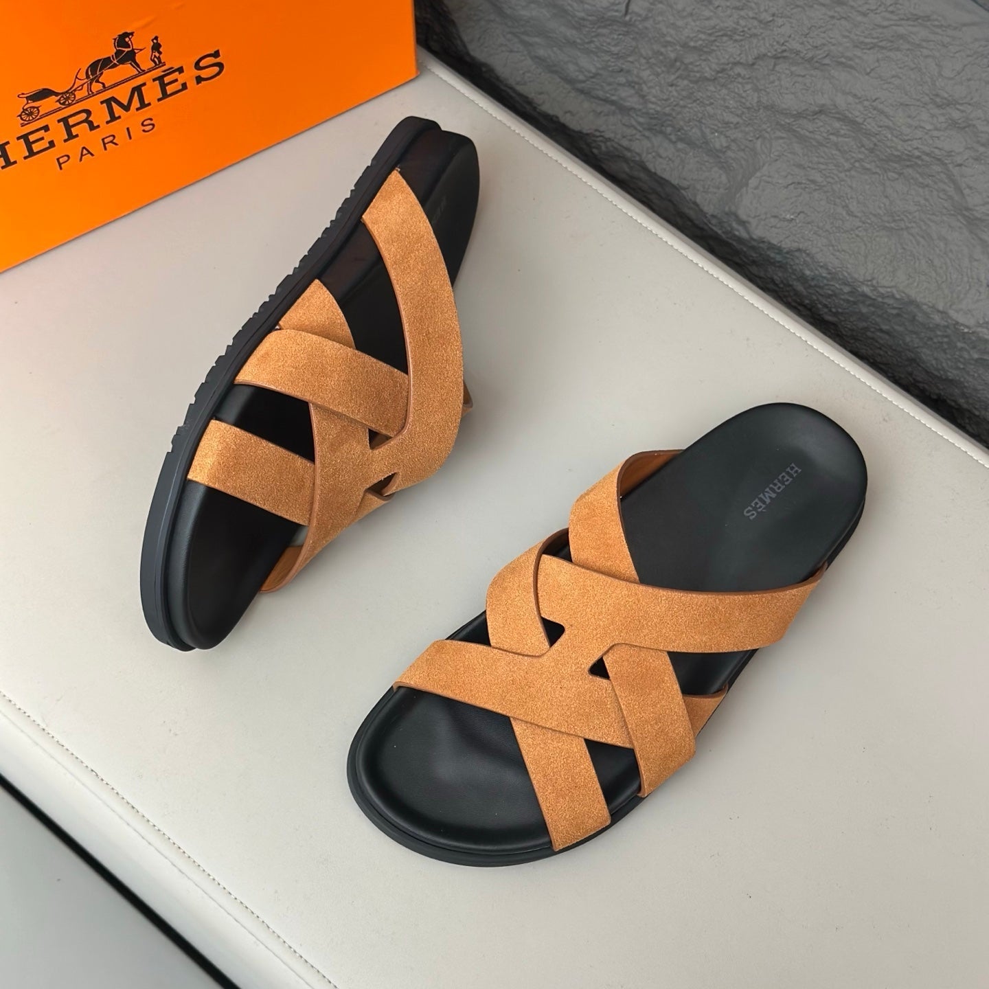 HM Men's Kazimir Slide Brown Calfskin Suede 603170