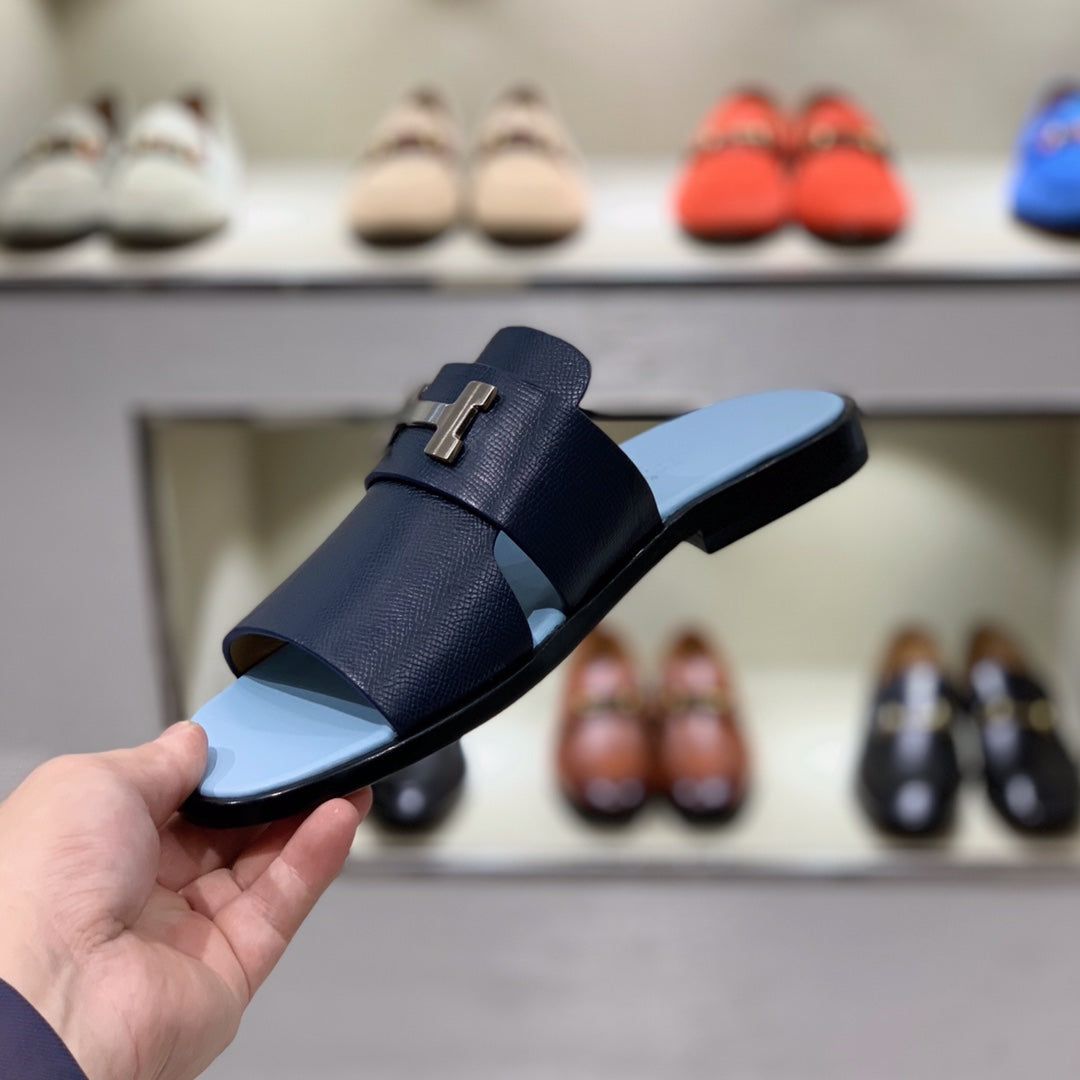 HM Men's Slide Navy Blue Cowhide Leather 588997