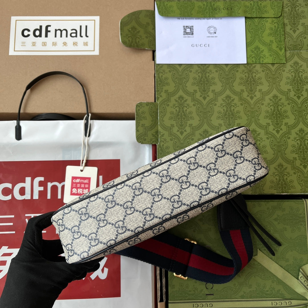 OPHIDIA GG SMALL 21 SHOULDER BAG BEIGE AND EBONY SUPREME CANVAS
