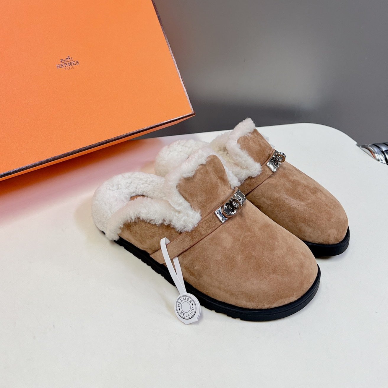 OZ Mule Light Brown Suede White Shearling