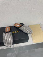 ALAIA FLAT MULES IN STRASS BLACK LAMBSKIN WITH RHINSTONES
