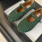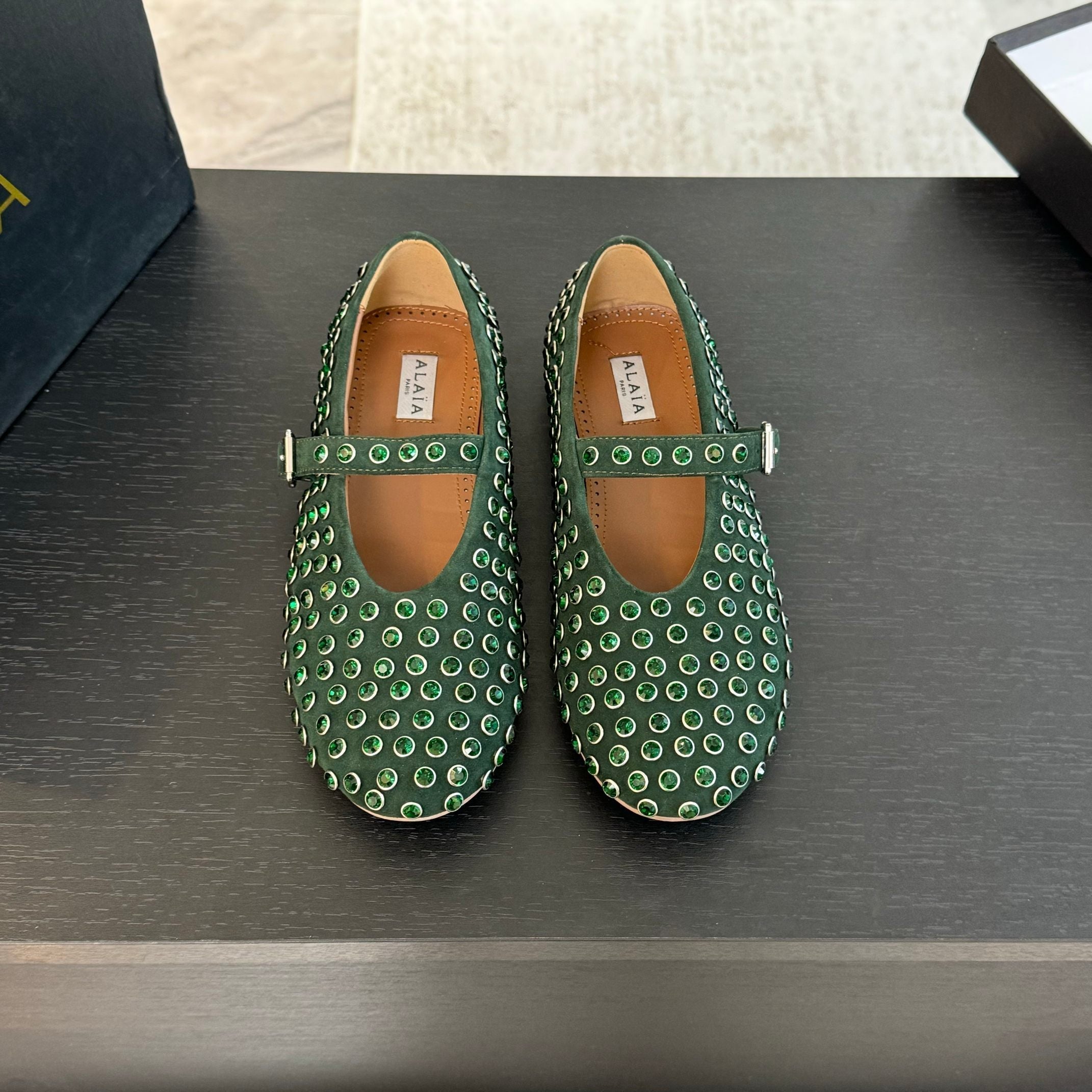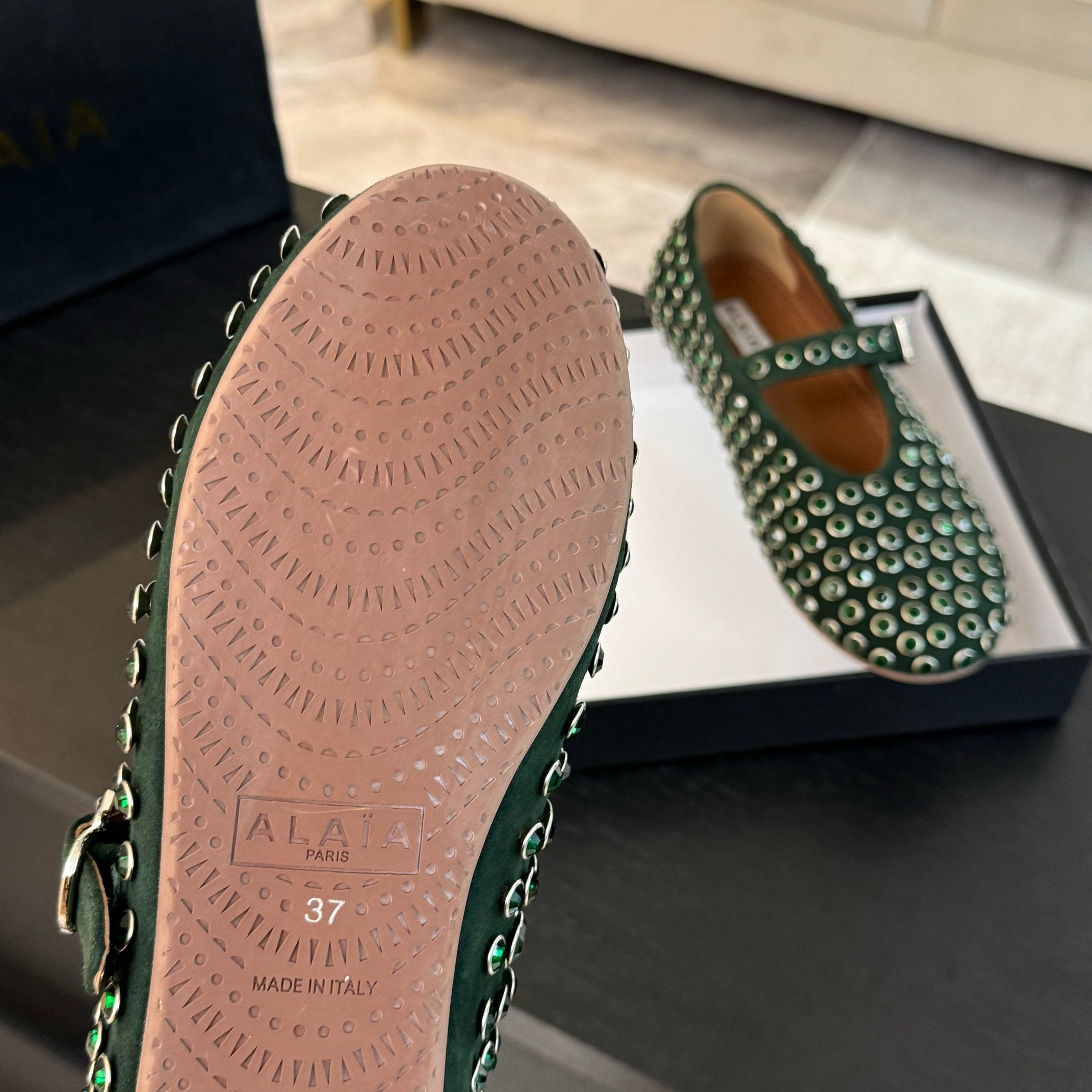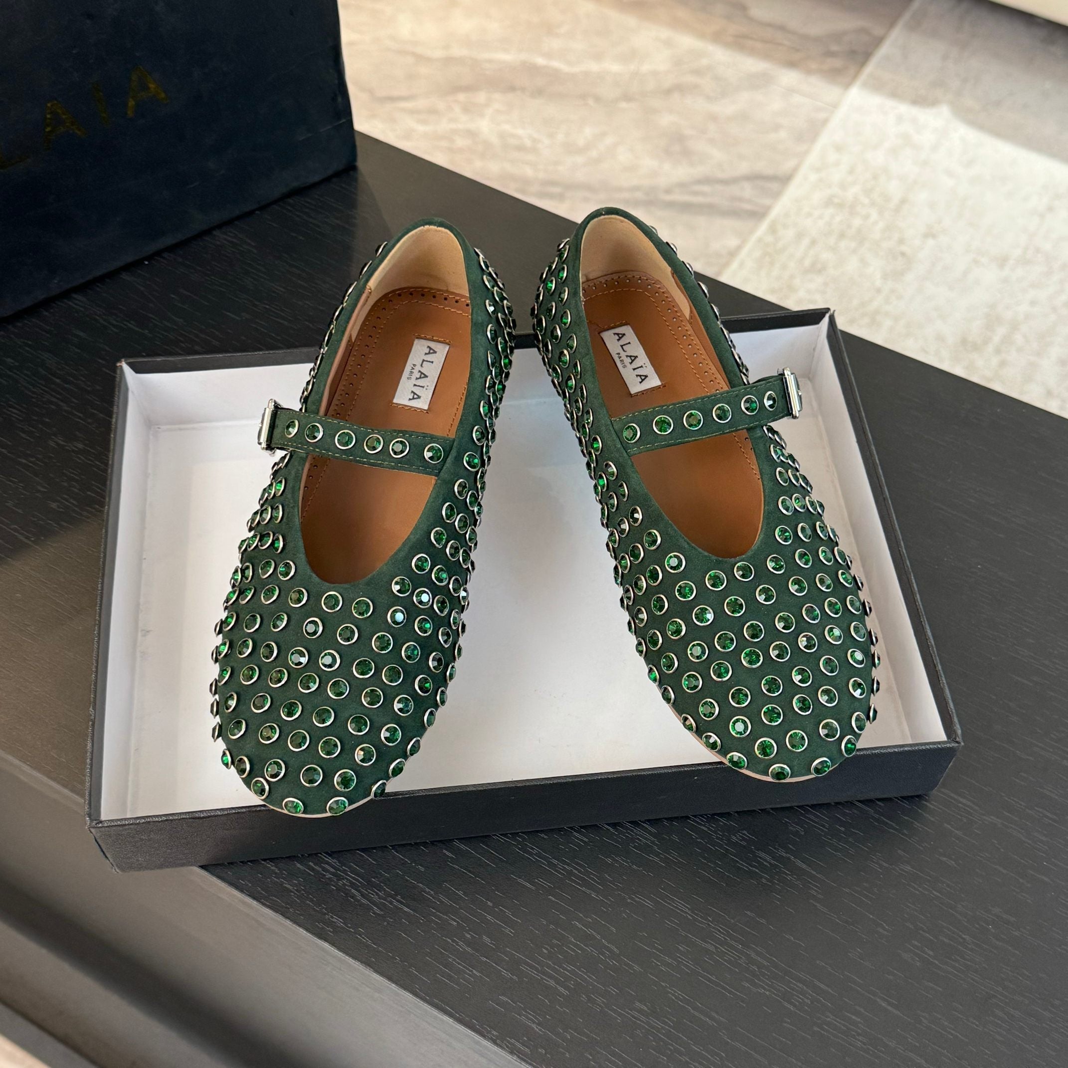 Alaia Strass Ballet Flats In Dark Green Suede Stone 935187