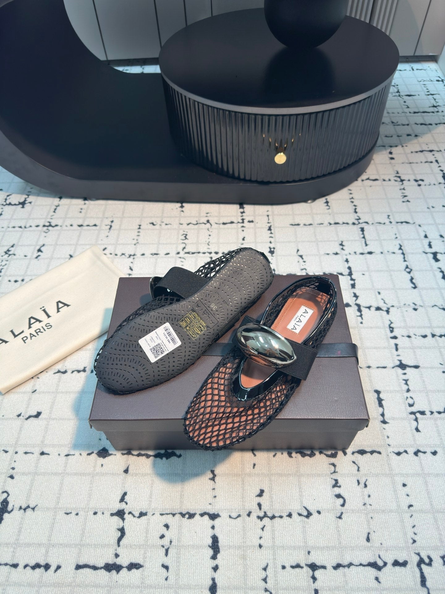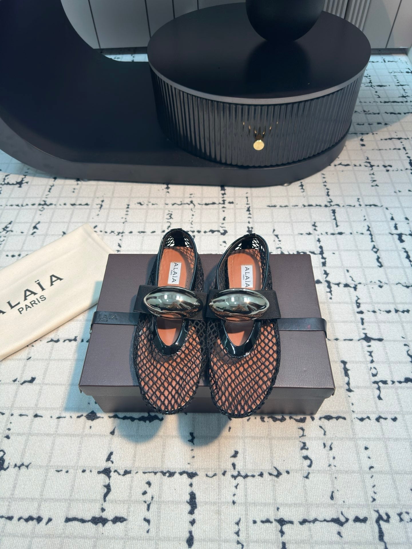Alaila Ballet Flats In Black Mesh Fabric 895242