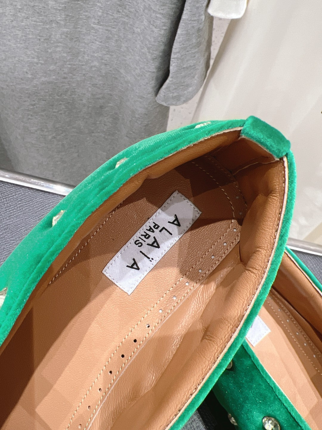 Alaila Ballet Flats In Green Velvet With Rhinestones 972004