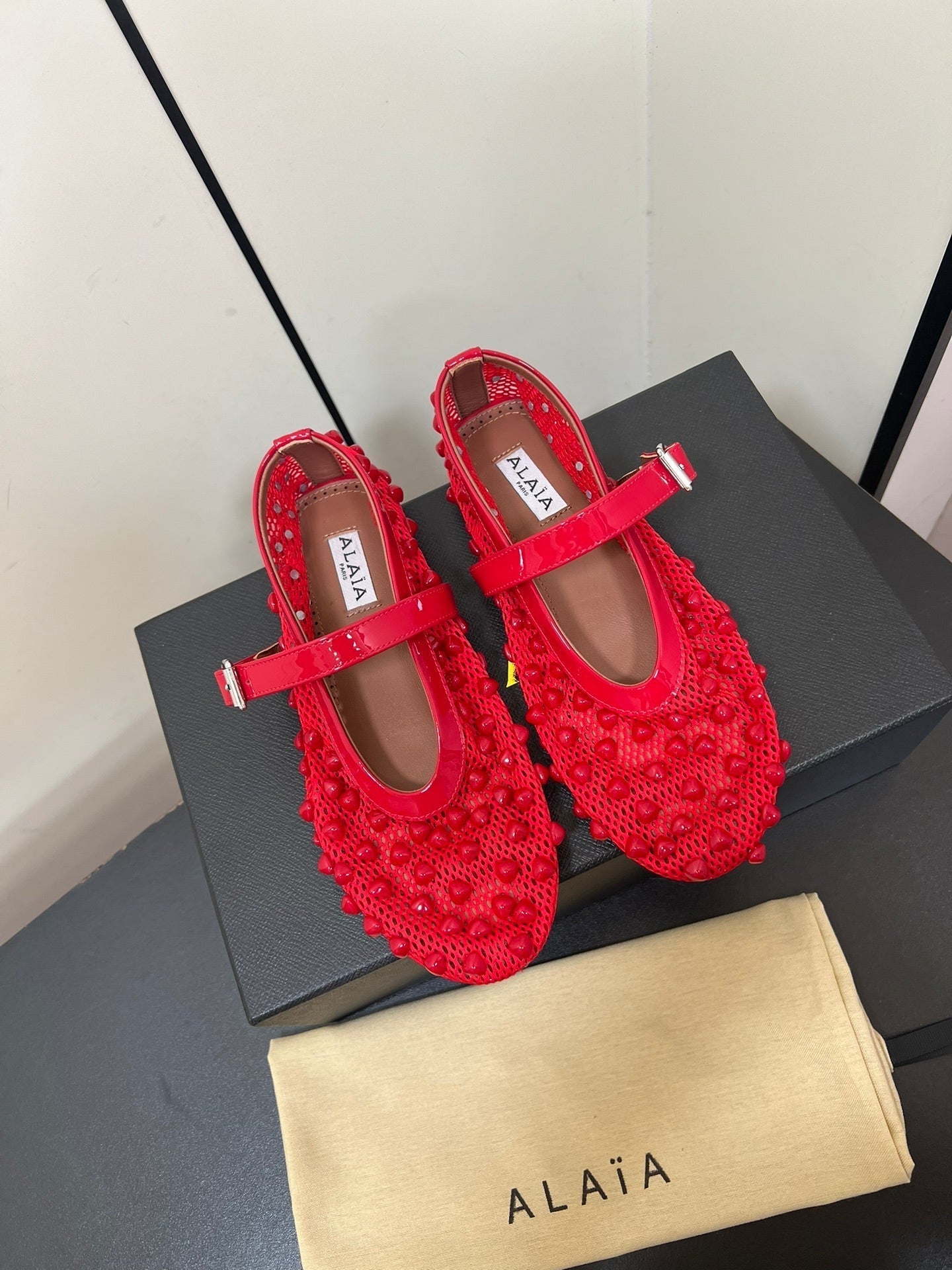 Alaila Ballet Flats With Studs On Fishnet In Red 975749