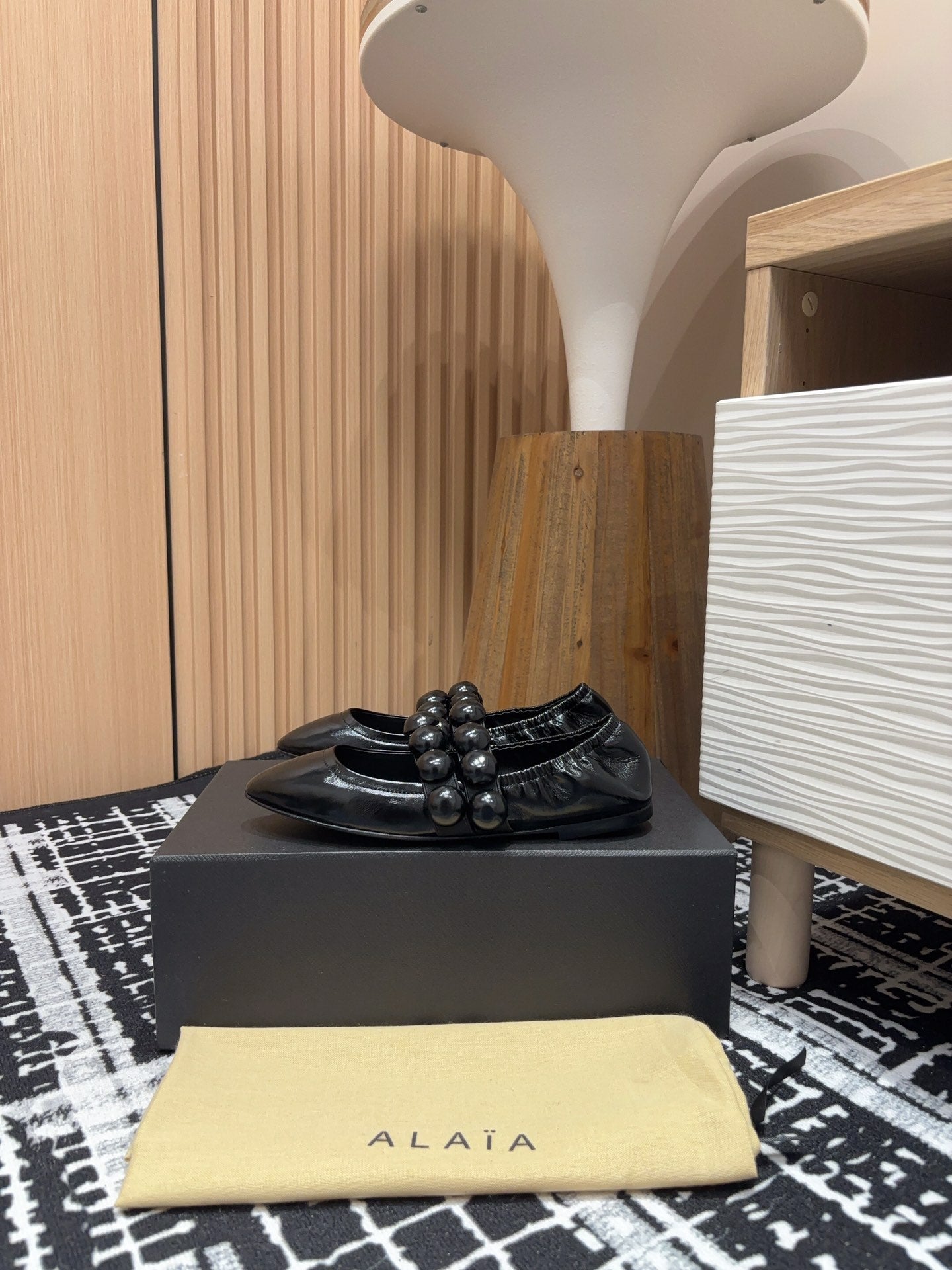 Alaila Sphere Ballet Flats In Black Glossy Calfskin 964200