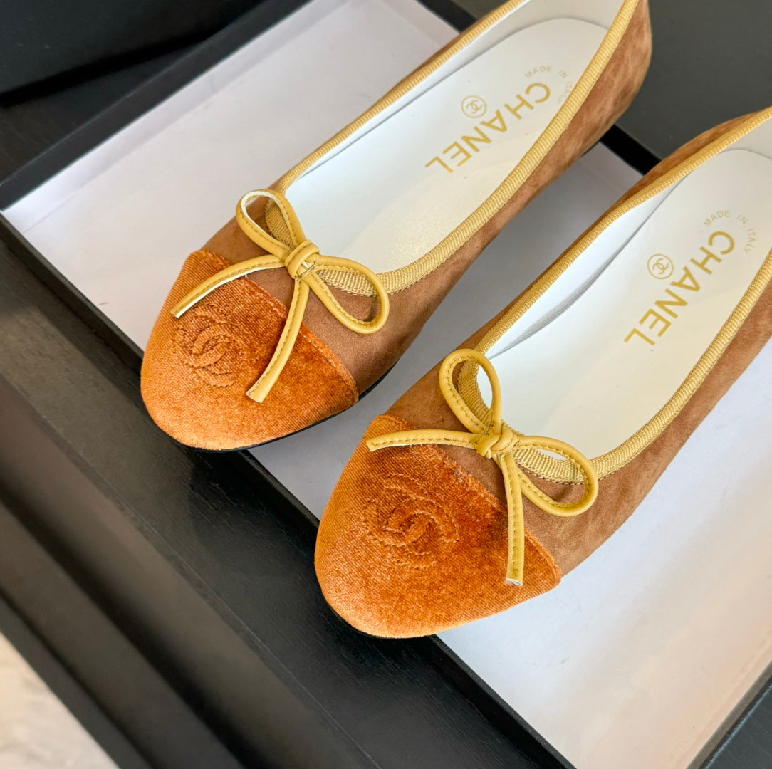 ballet flat brown suede amber canvas