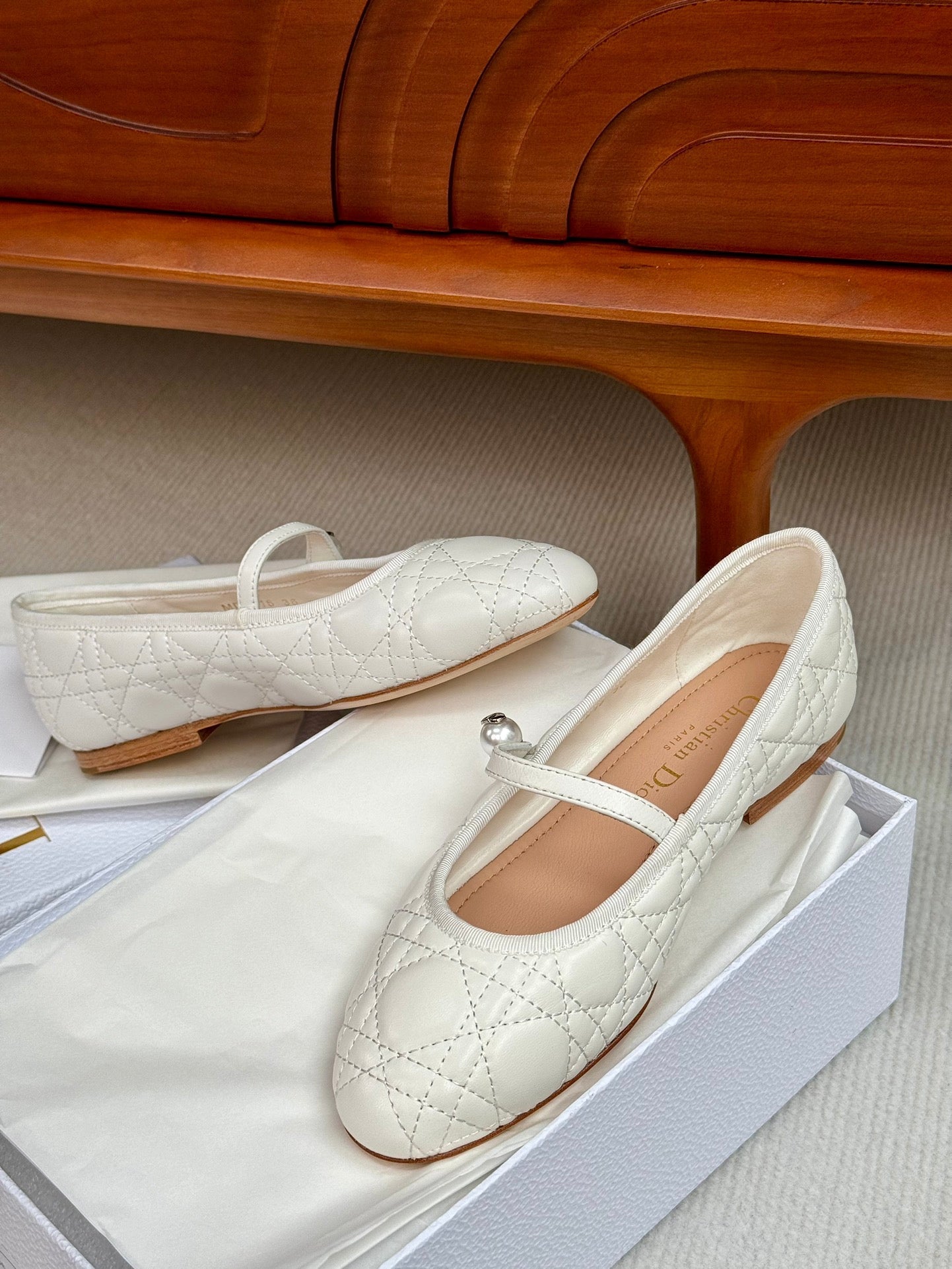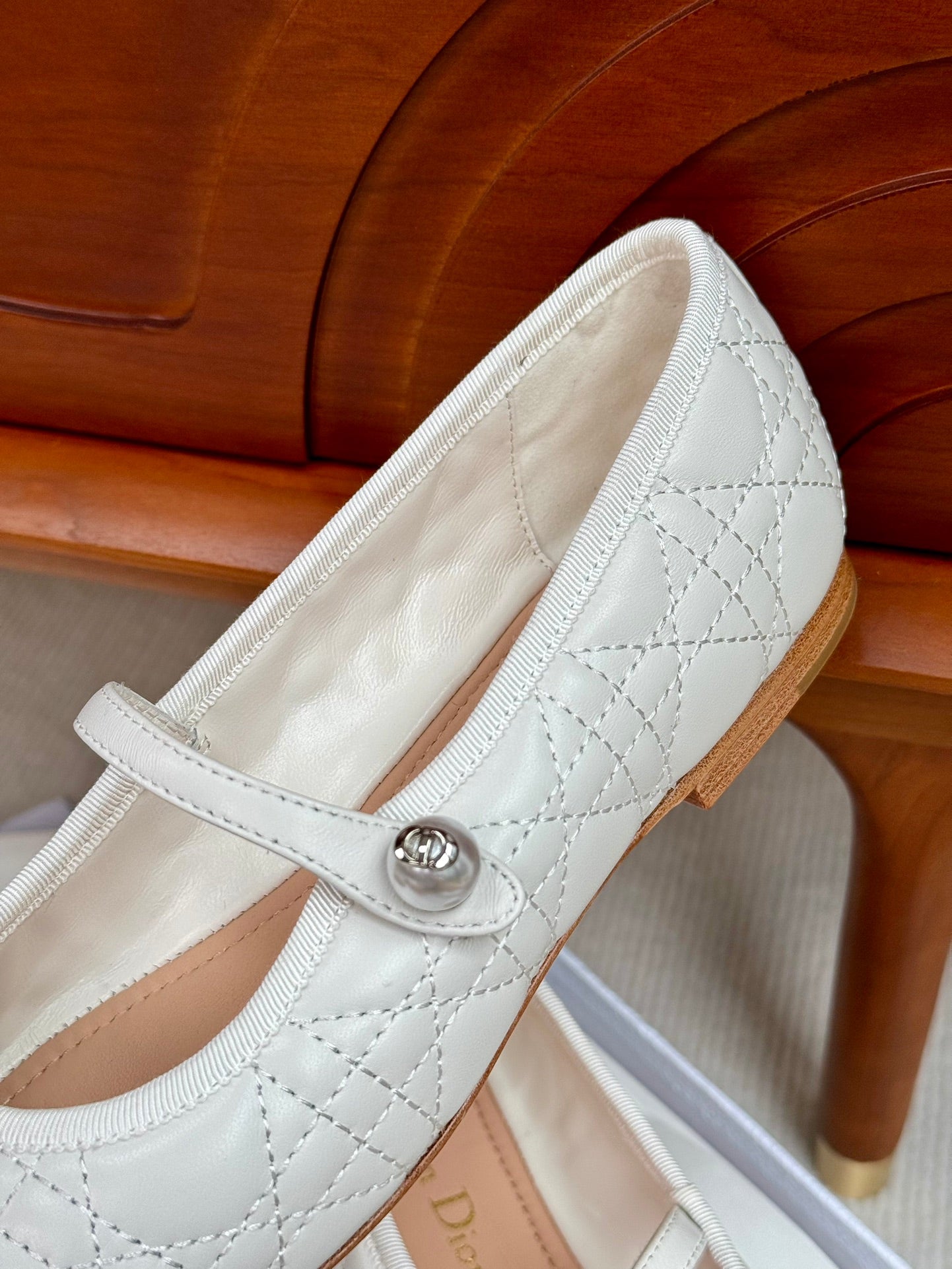 cd ballet flat white lambskin mop middle