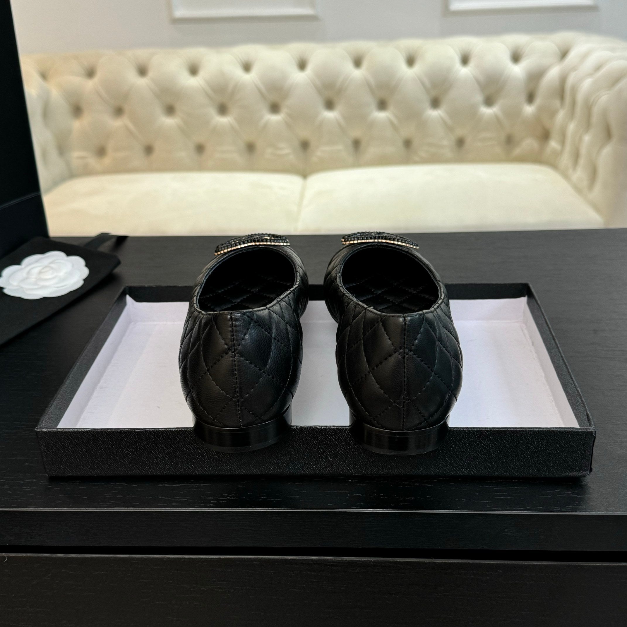 cc classic ballet flat black quilted calfskin