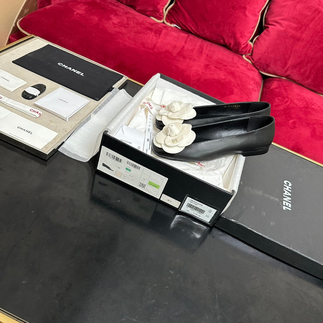 ballet flat white flower black calfskin