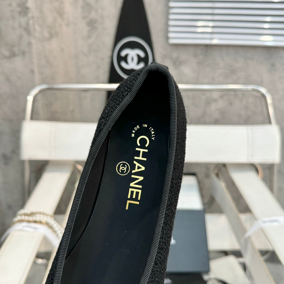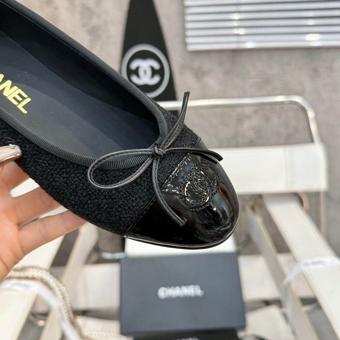 ballet flat black tweed patent calfskin