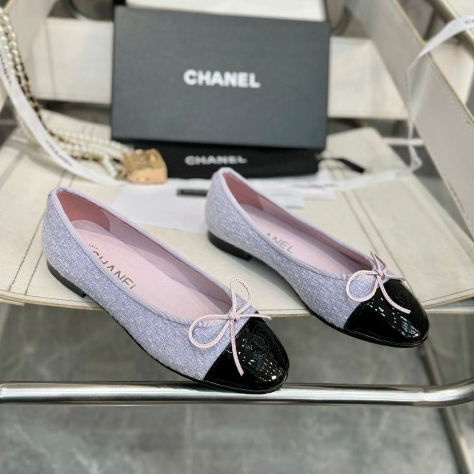 ballet flat light violet tweed black patent calfskin