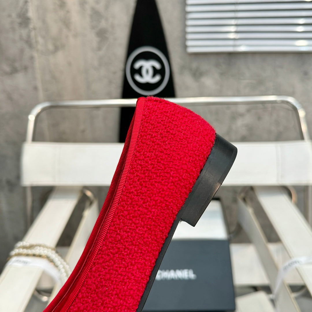 ballet flat red tweed black patent calfskin
