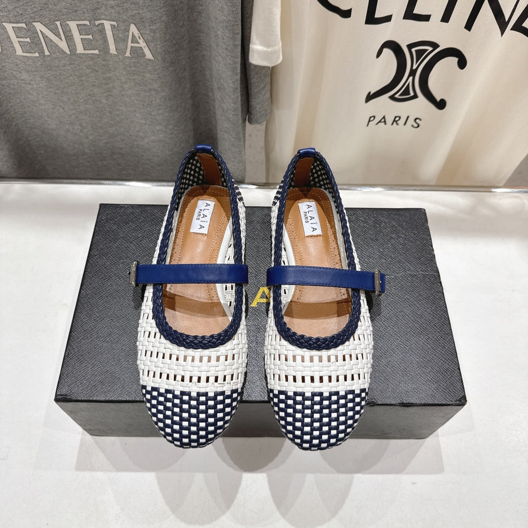 ALAIA MARY JANE FLATS white mix navy blue woven calfskin pattent