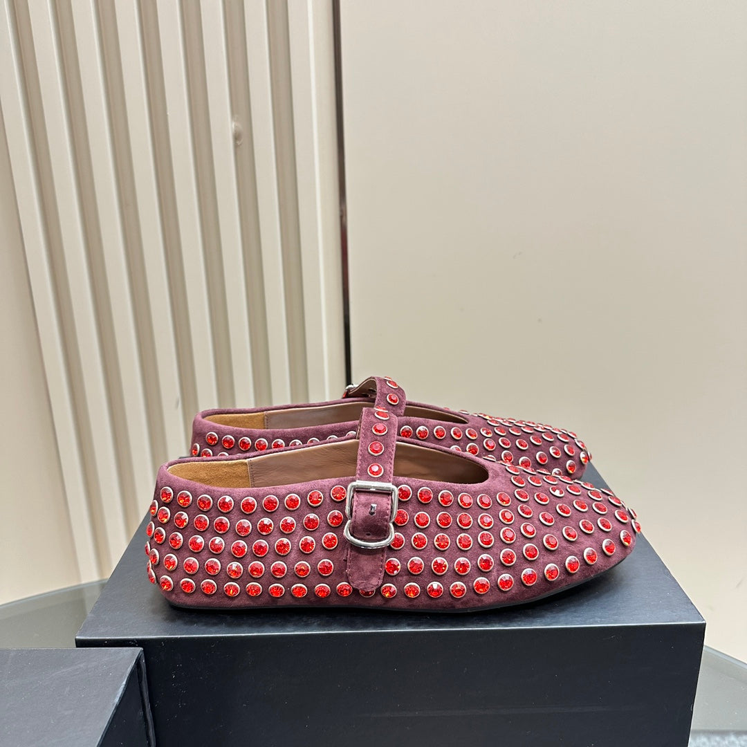 ALAIA SPHERE BALLET FLATS IN CHERRY RED LAMBSKIN