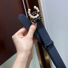 CC BELT 3.0CM LEATHER BLACK BUCKLE GOLD PEARL DIAMOND