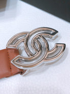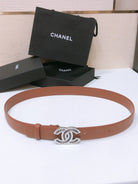 CHANEL BELT 3CM BROWN EMBROIDERED LAMBSKIN WITH SILVER HARDWARE